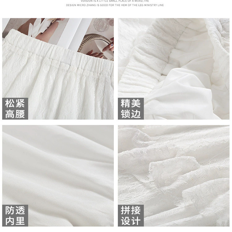 设计感斜纹蕾丝半身裙女春秋季穿搭白色松紧腰网纱a字长裙蛋糕裙