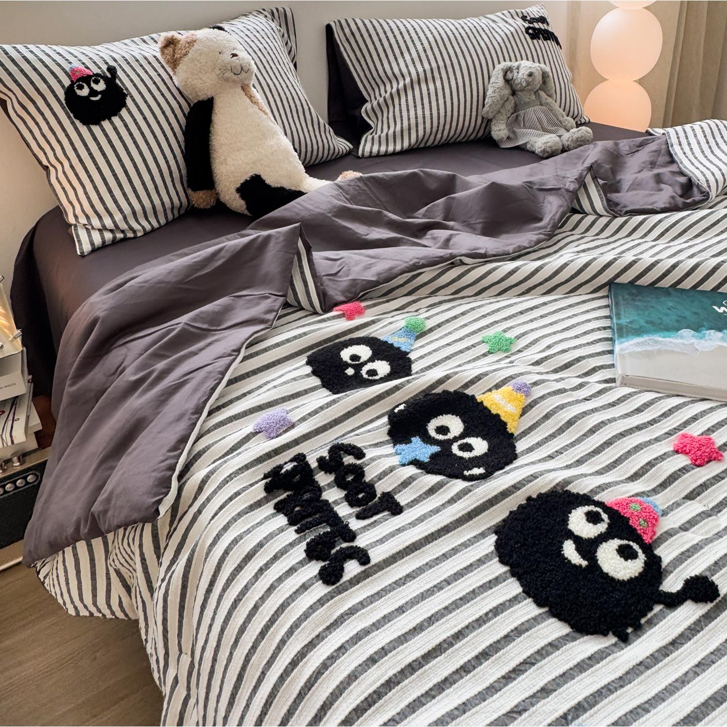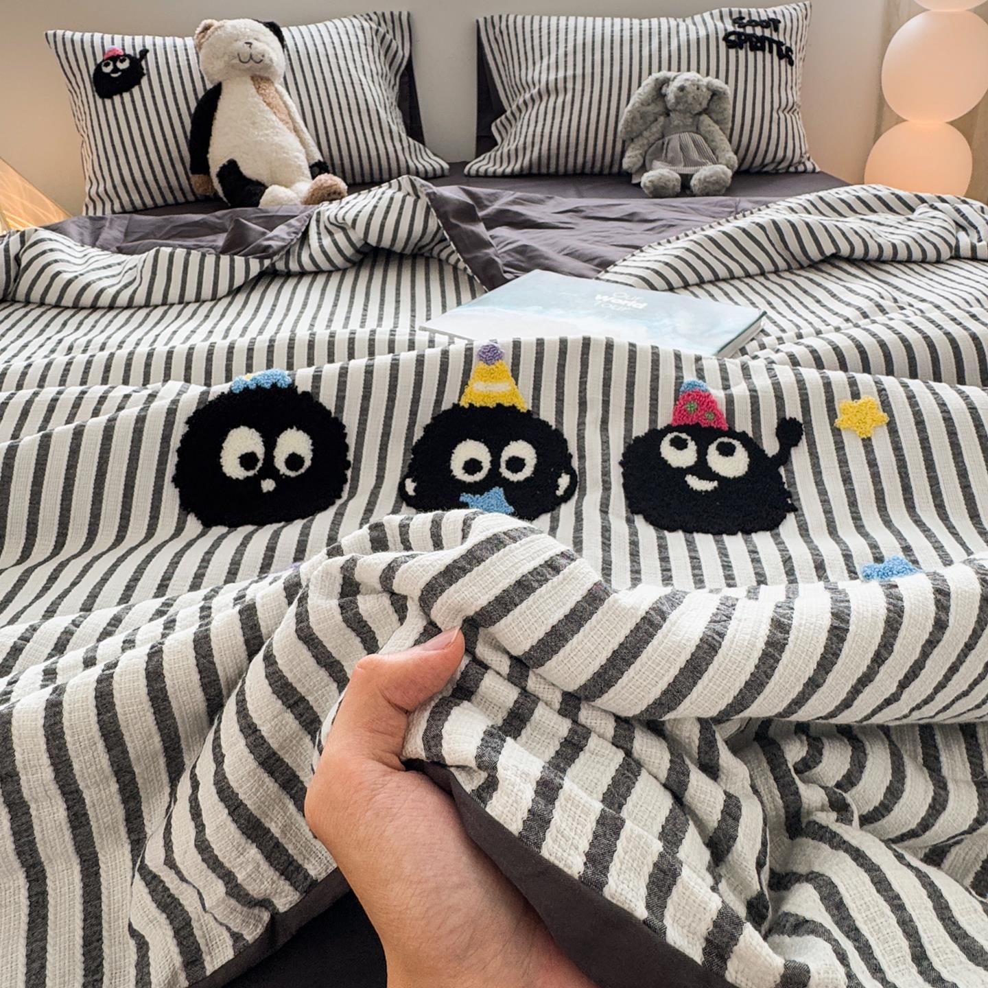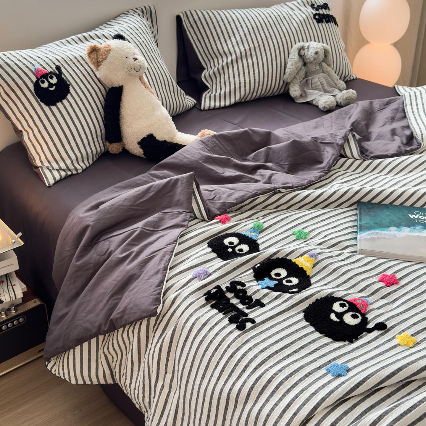 可爱小煤球夏季夏凉被空调被全棉纯棉四件式可机洗2025新款薄被子