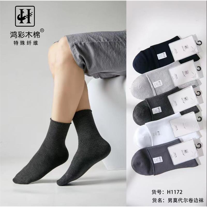 莫代尔男士中筒袜简约纯色柔软透气袜子秋冬棉袜无骨缝合不勒脚袜