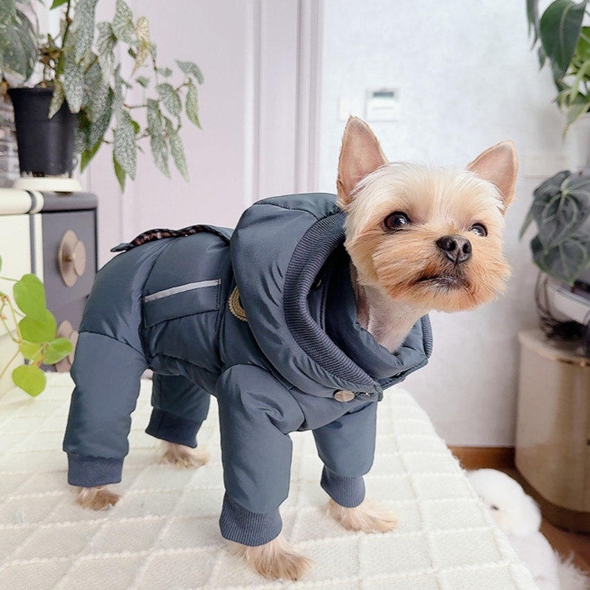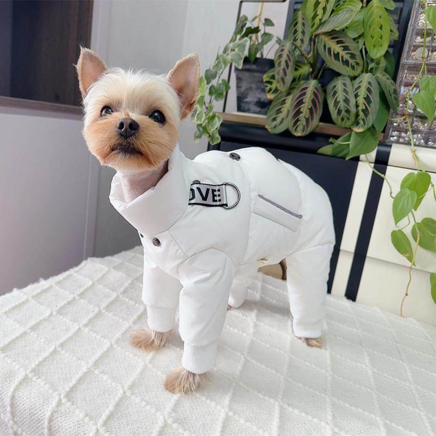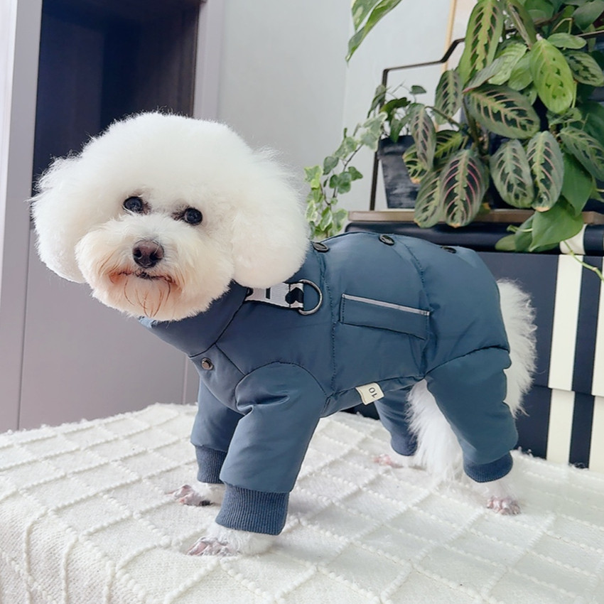 潮查利家宠物冬装加厚防风羽绒服泰迪比熊狗狗小犬牵引扣保暖棉衣