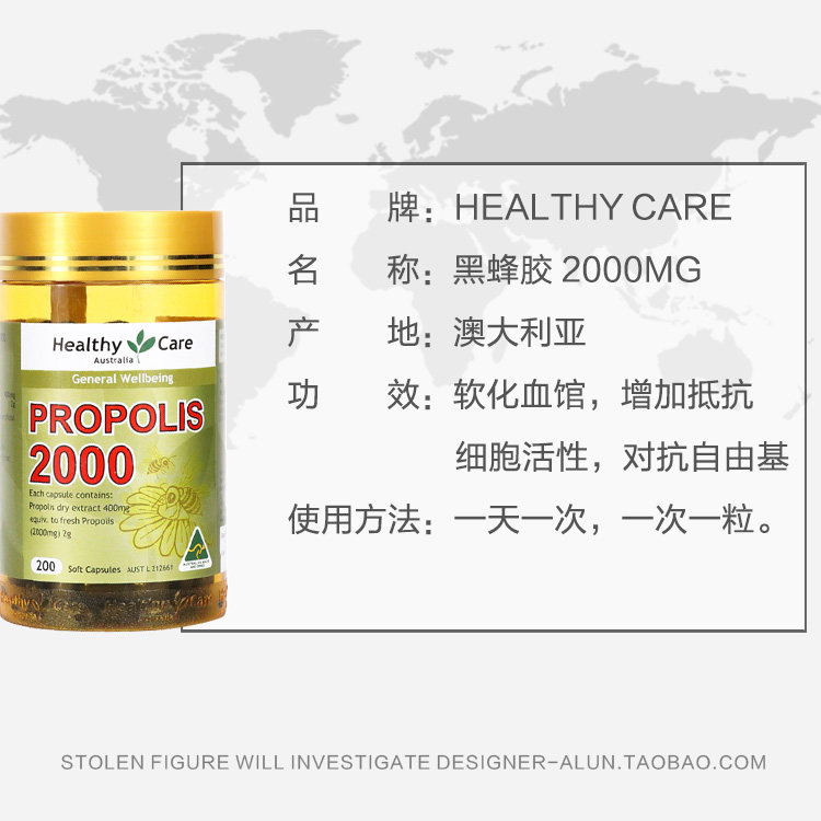 澳洲healthycare黑蜂胶胶囊2000mg正品原装保健进口HC高浓度200粒
