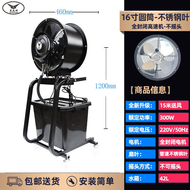 工业轴流喷雾风机可移动大风力手推式雾化降温加湿大功率落地风扇