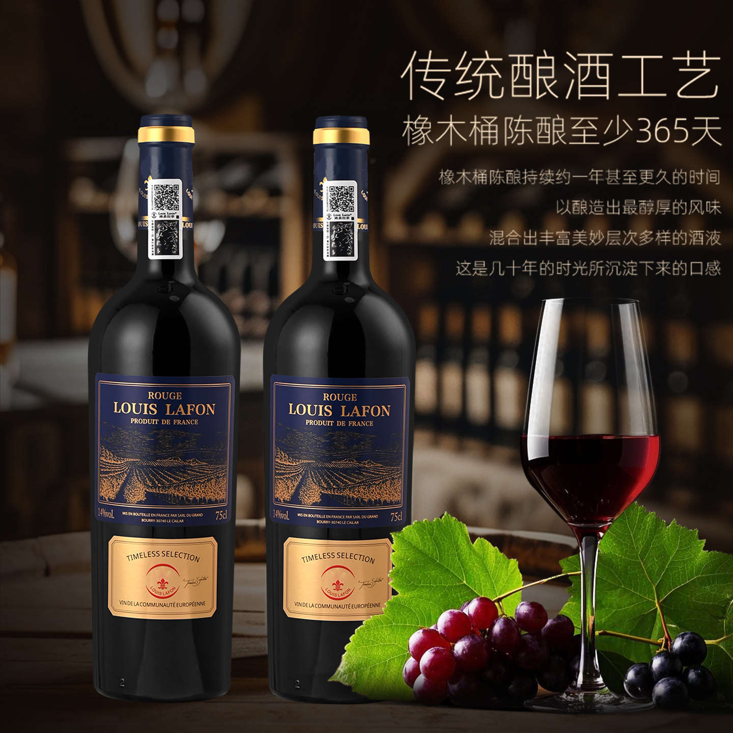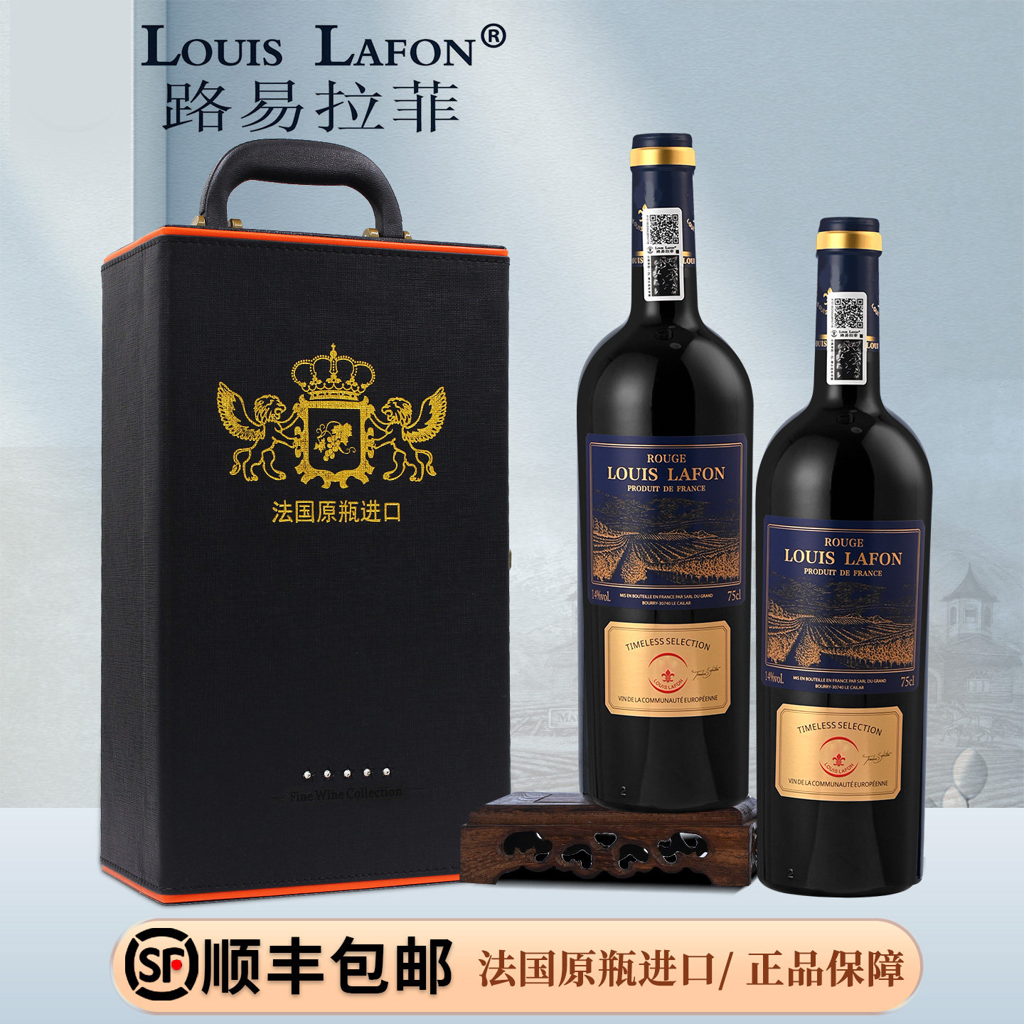 法国红酒2支礼盒装路易拉菲LOUISLAFON传世干红葡萄酒原瓶进口酒
