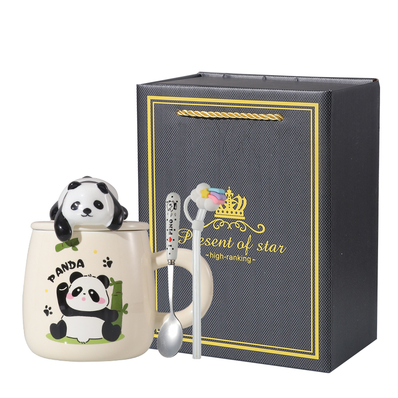 熊猫马克杯子女生高颜值伴手礼咖啡杯带盖勺吸管生日礼物可爱礼盒