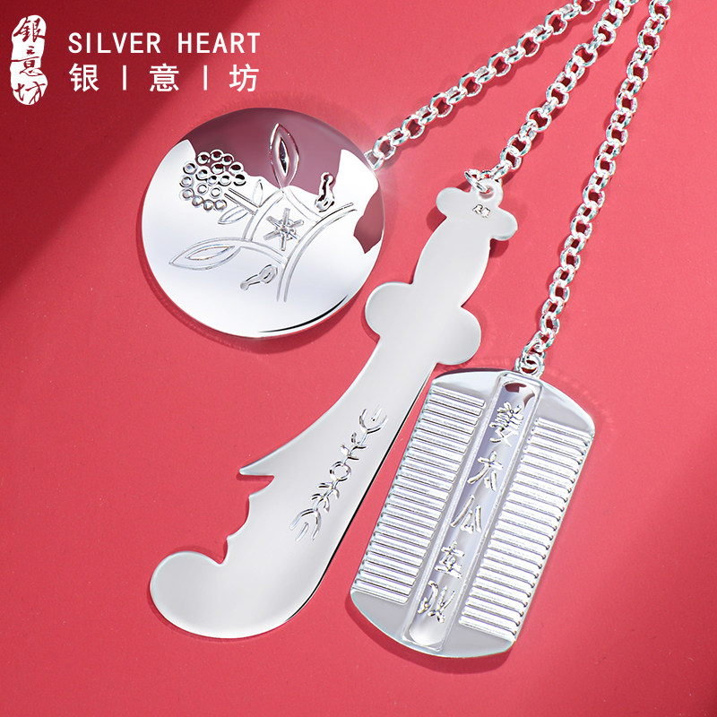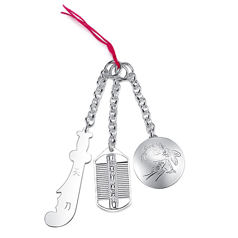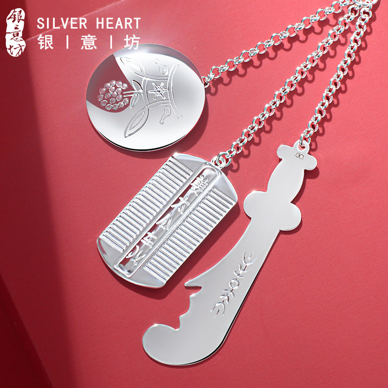 关刀梳子银镜三件套宝宝银饰吊坠十二生肖孕妇婴儿纯银挂件满月礼