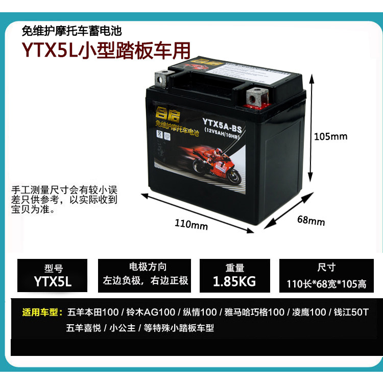 摩托车电瓶12v干蓄电池5a五羊喜悦本田女装踏板小公主100电池通用