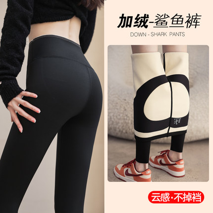 高腰鲨鱼裤女加绒秋冬外穿加厚打底裤保暖提臀黑色小脚瑜伽紧身裤