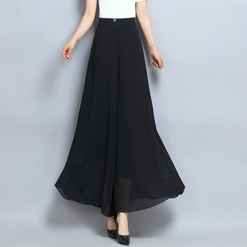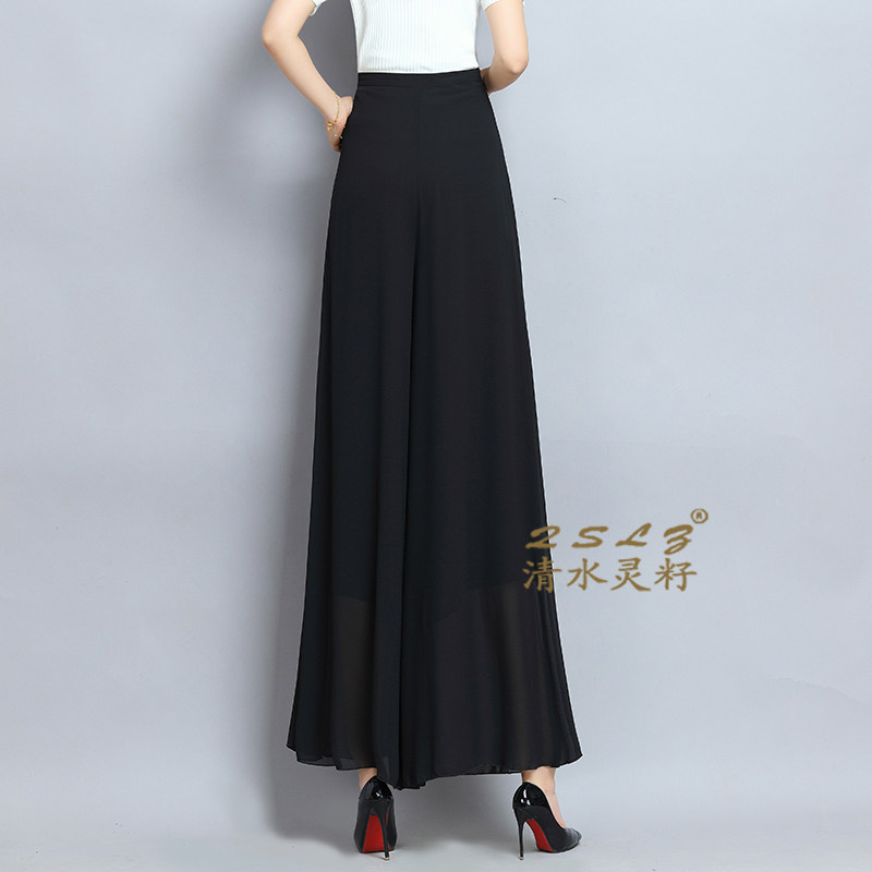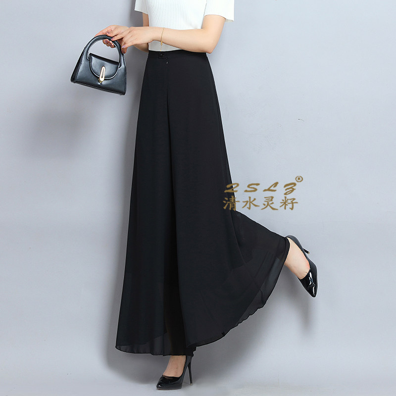 夏季薄款黑色阔腿裤裙裤雪纺长裤