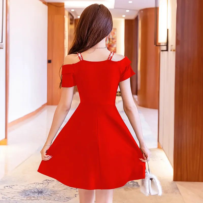 红色吊带性感连衣裙高级感订婚女夏季2025新款气质礼服小个子裙子