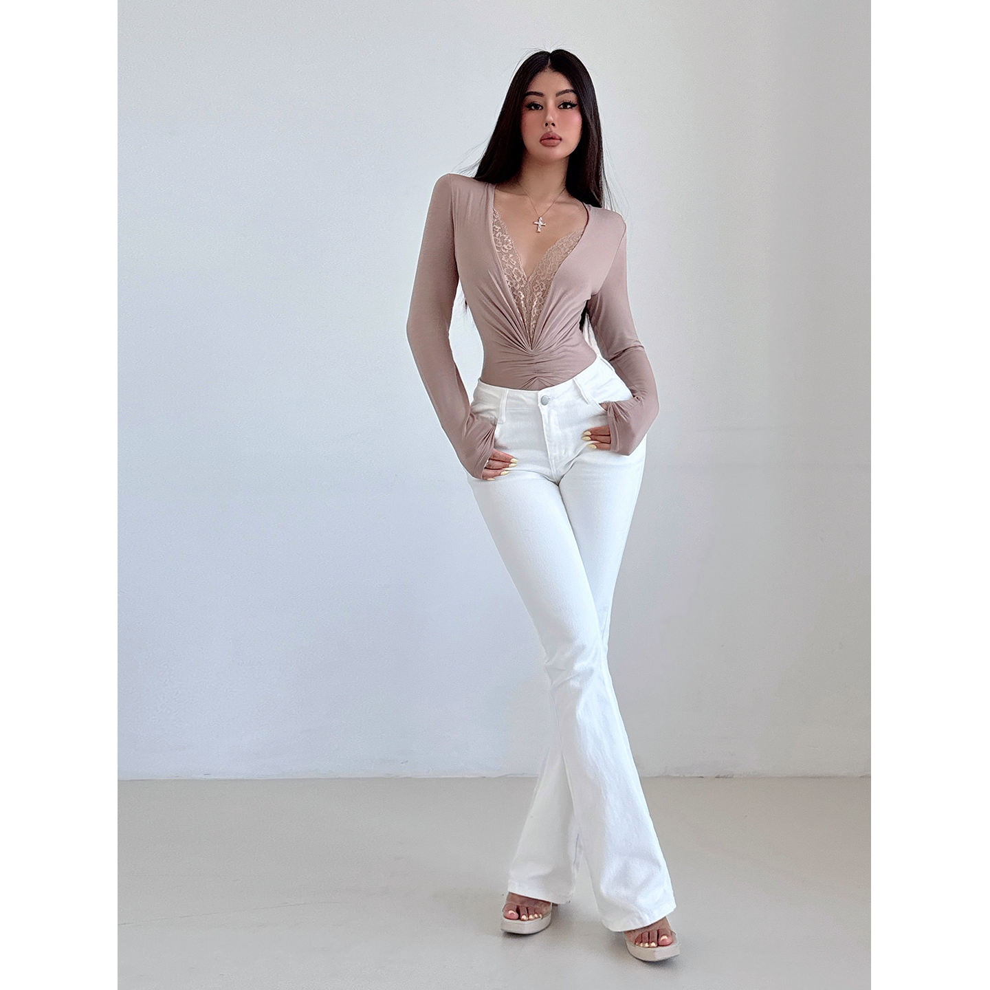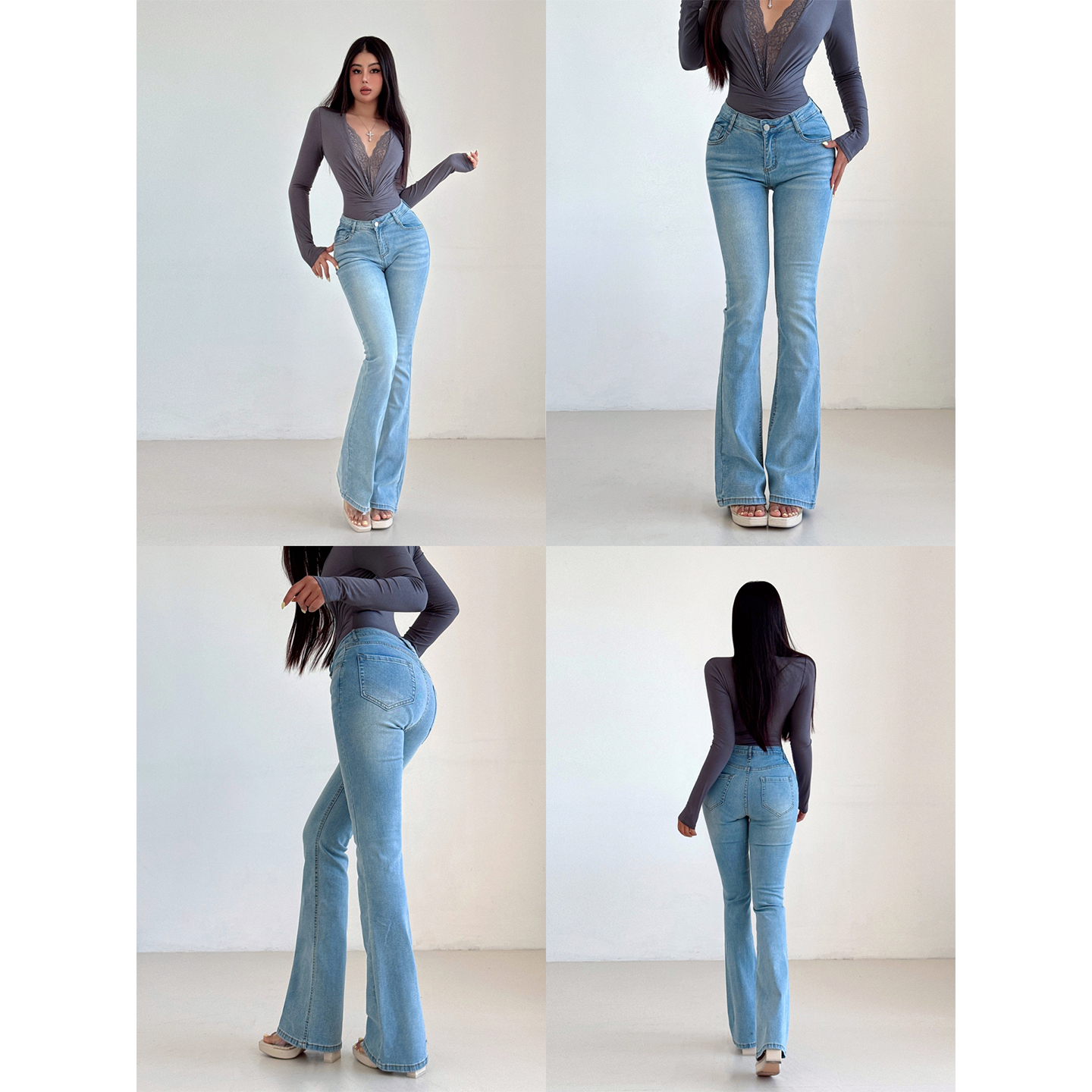 美式复古黑色低腰微喇丰胯牛仔裤