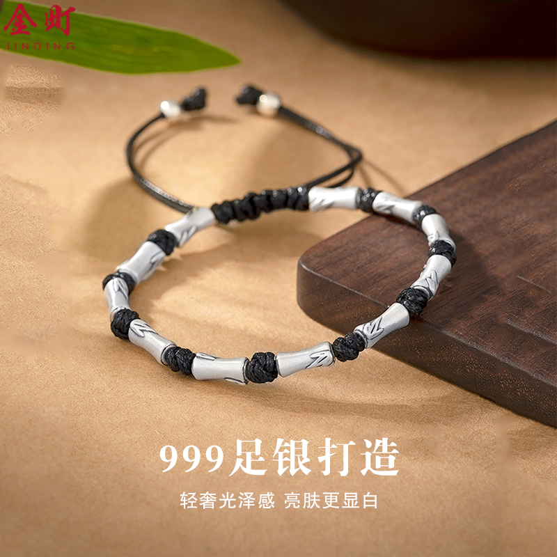 金町纯银竹节手链男款999足银上岸好运编织手绳红绳情侣手链一对