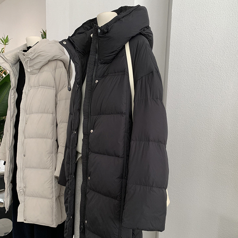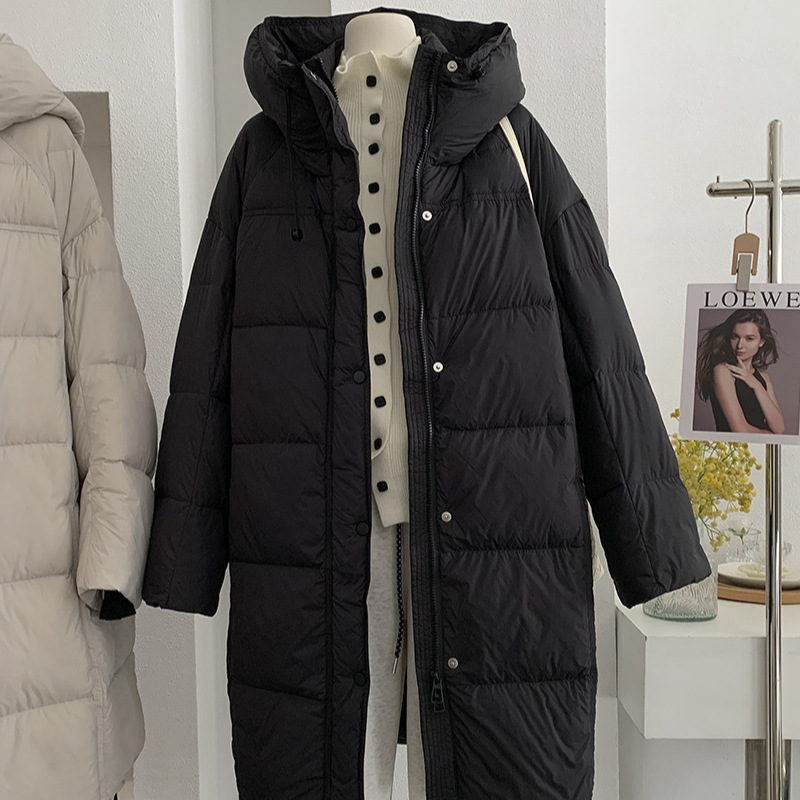 可可 鸭绒连帽时尚羽绒服长款加厚泡芙保暖过膝宽松外套潮 5475