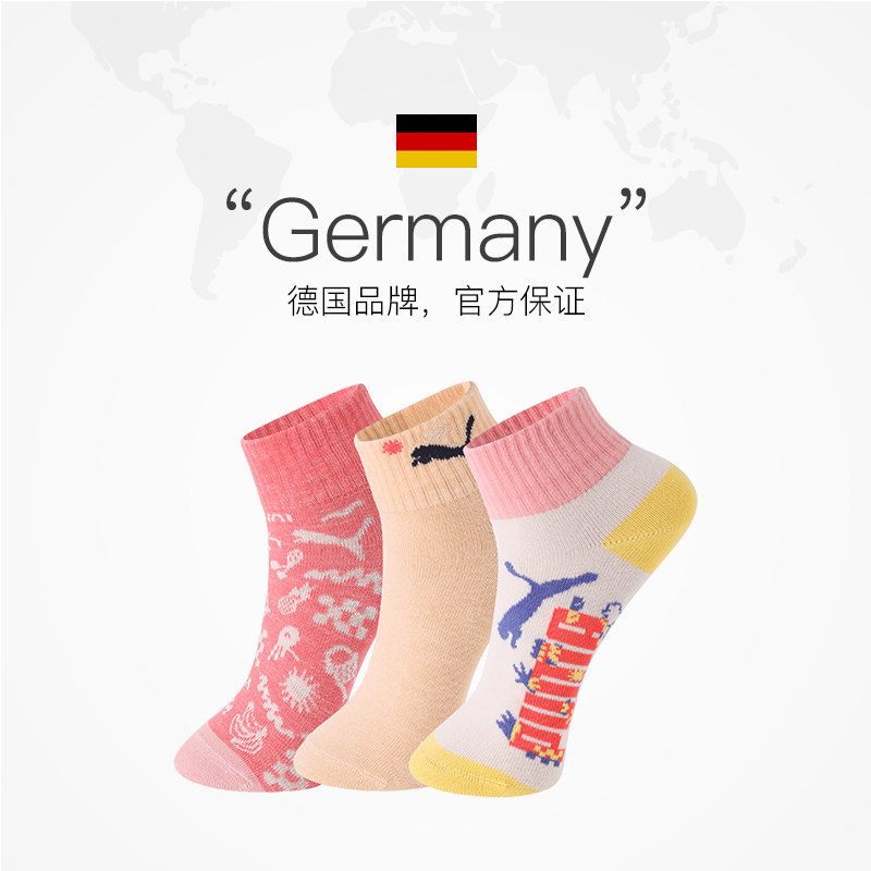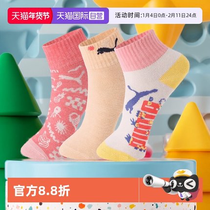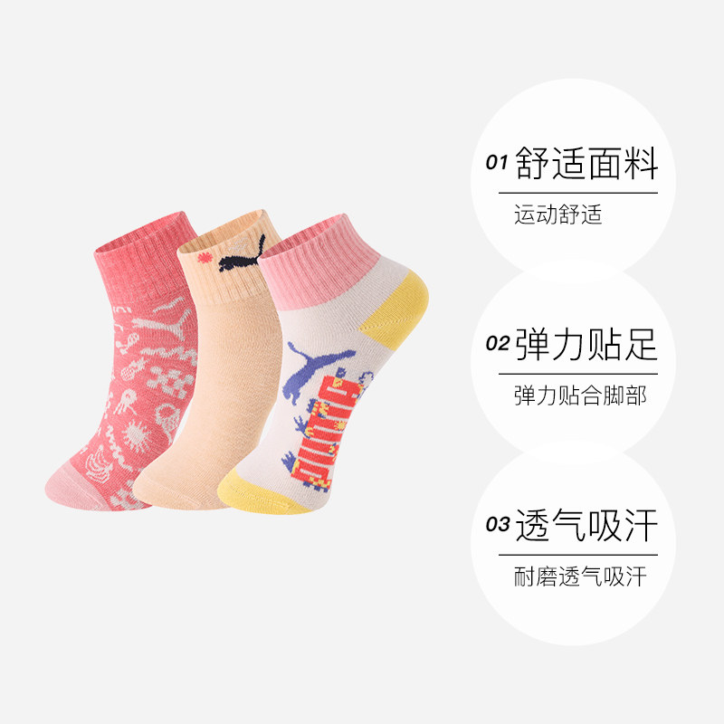 【自营】PUMA彪马儿童袜子休闲百搭高弹舒适透气中筒袜3双装运动