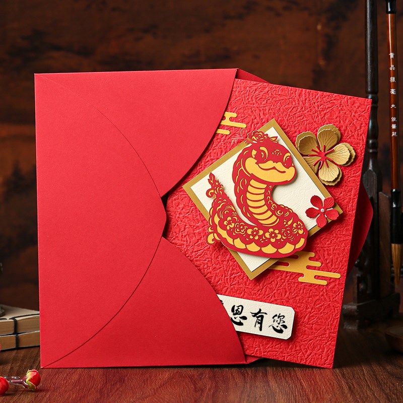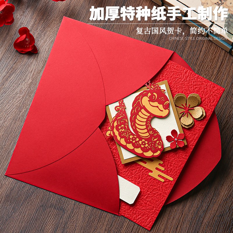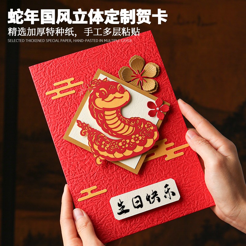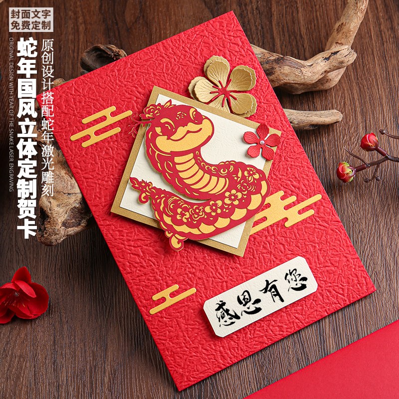 2025新春蛇年元旦立体贺卡定制国风送老师高级感谢客户年会邀请函