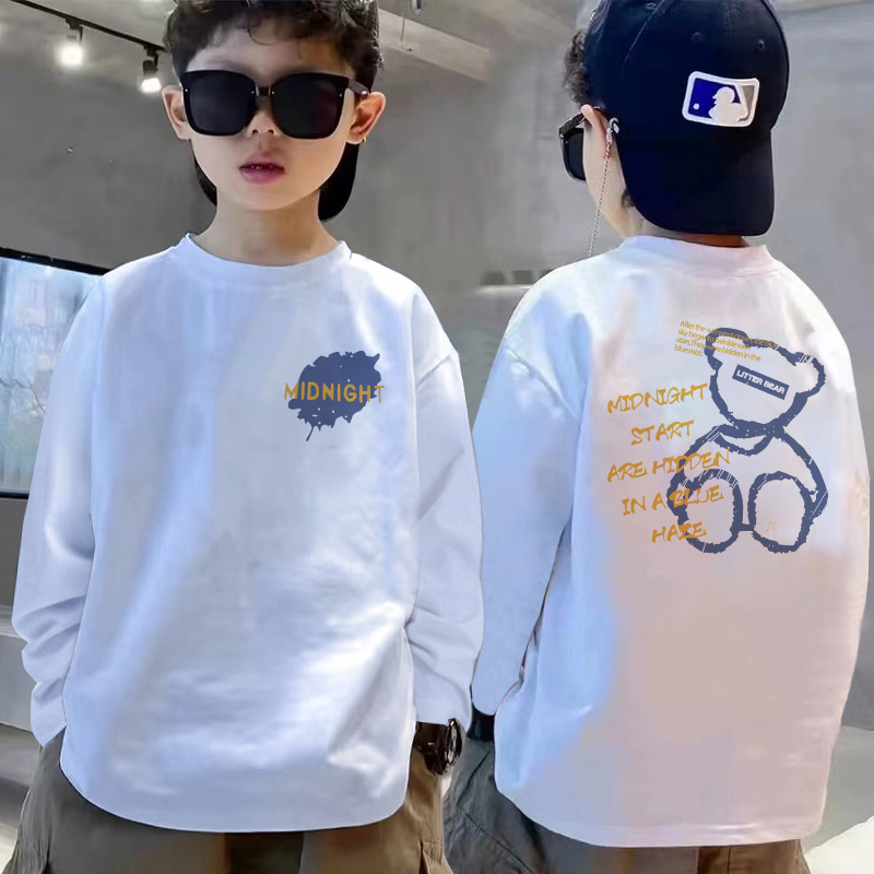 春秋季新款纯棉男童长袖国风卡通t恤中大童百搭体恤宽松内搭上衣