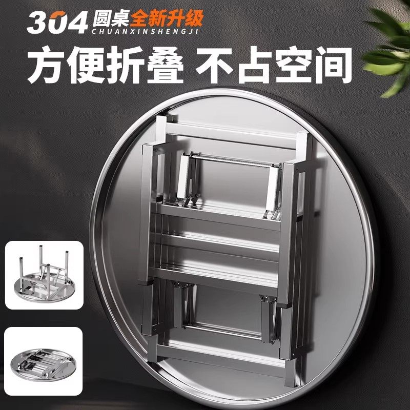 2025新款不锈钢可折叠桌子家用吃饭餐桌新型便捷式专用摆摊小圆桌