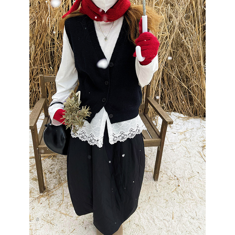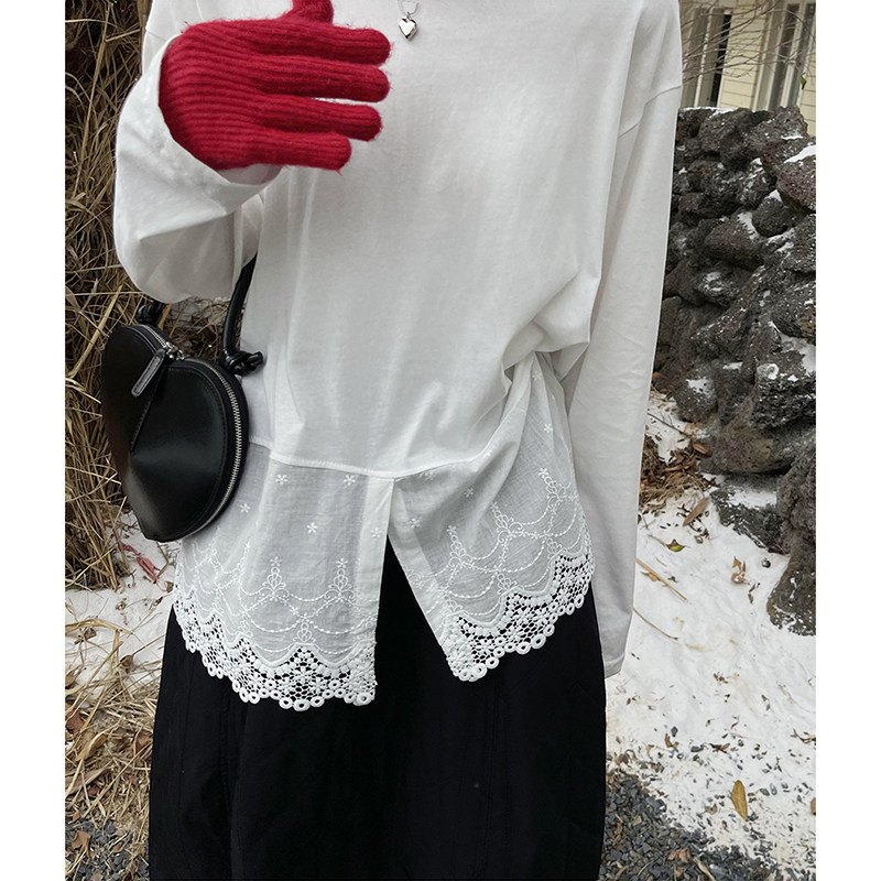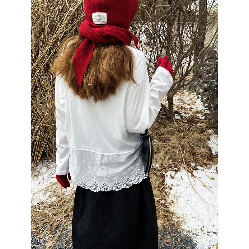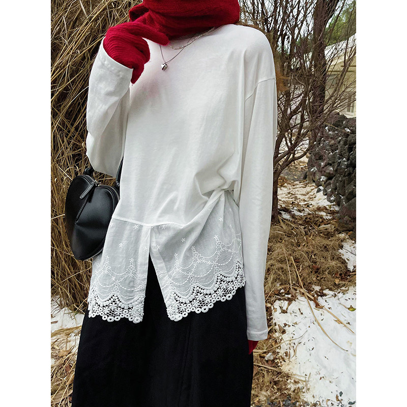 库芦蕾丝拼接长袖t恤女宽松内搭