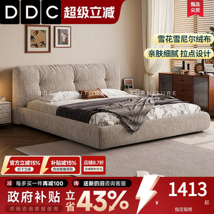 DDC雪花雪尼尔绒可拆洗布艺床主卧大床2026新款软包床卧室双人床