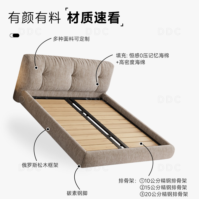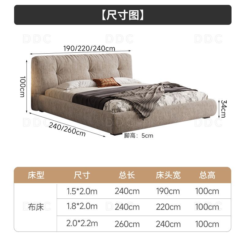 DDC雪尼尔绒可拆洗布艺床大床