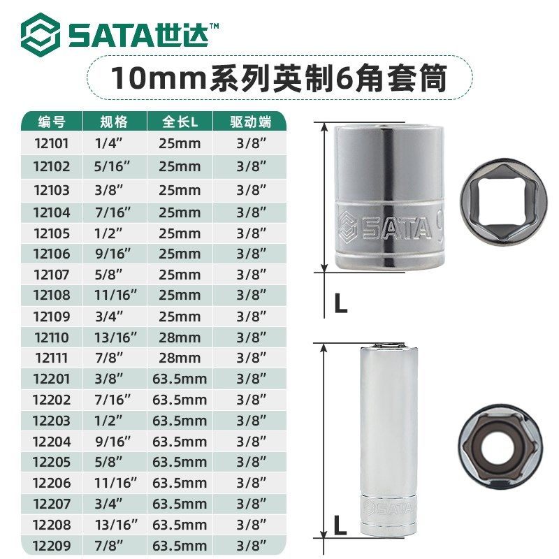 世达套筒头子 世达10mm英制标准型六角套筒头1/4-7/8中飞梅花套筒