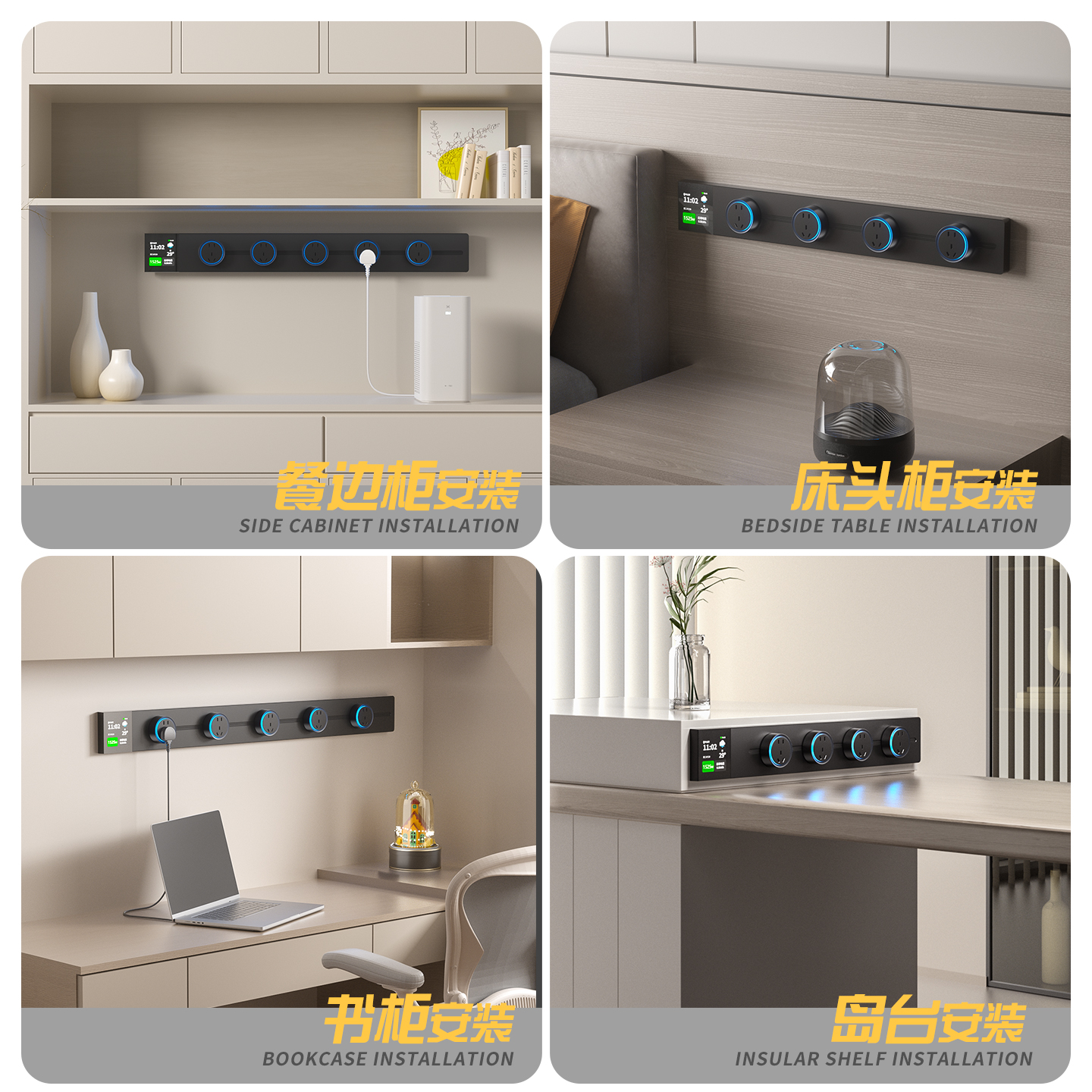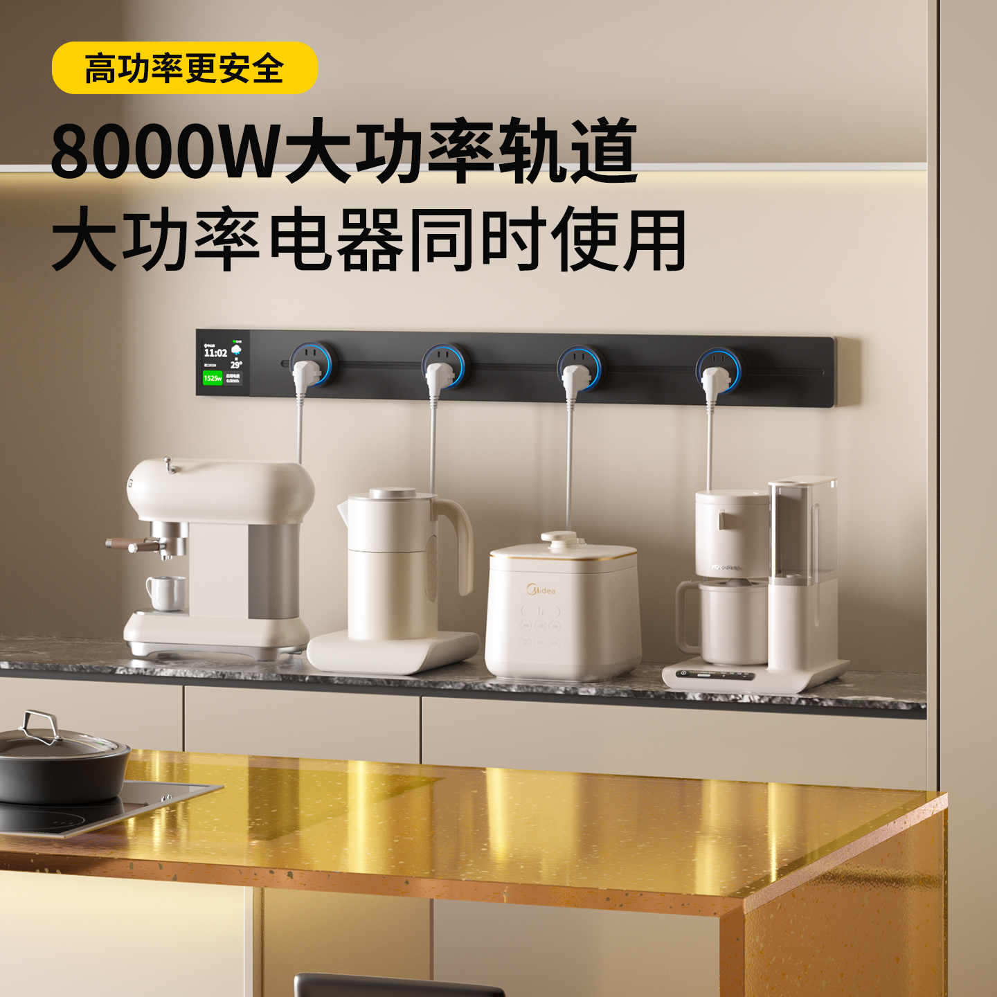 木林森轨道插座带开关智能家用餐边柜明装滑动移动电力导轨插排