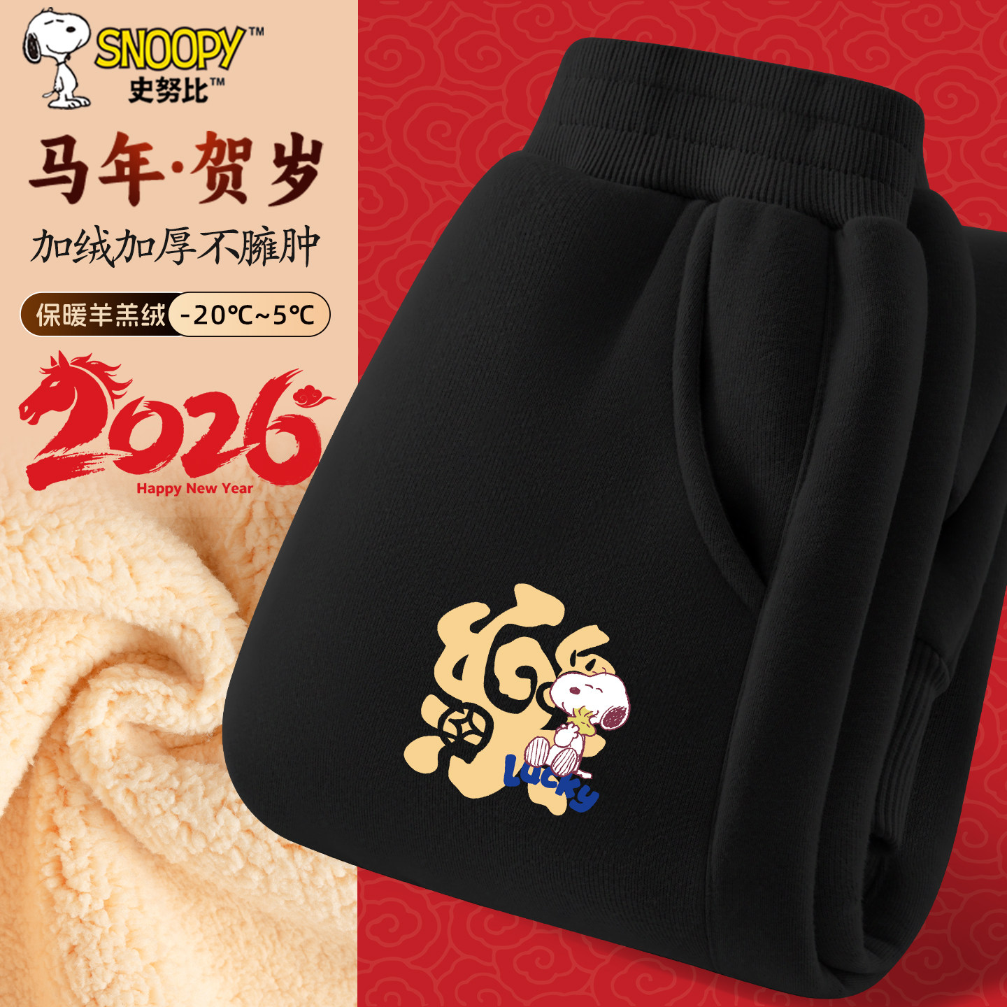 史努比男童裤子秋冬款羊羔绒卫裤