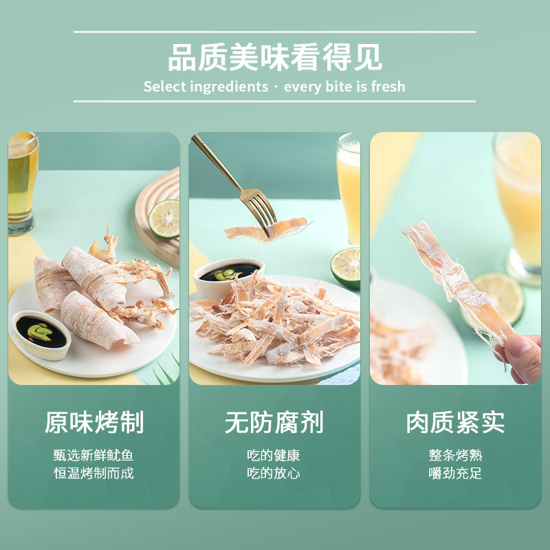 北海印象手撕芥末鱿鱼干开袋即食烤鱿鱼现烤海鲜零食烧烤KTV同款