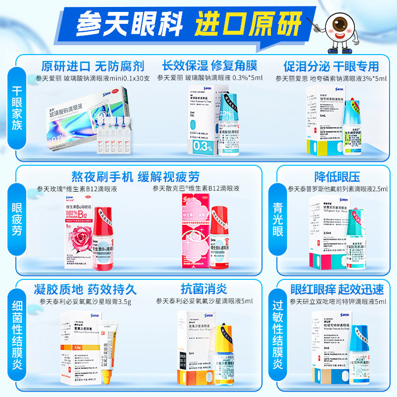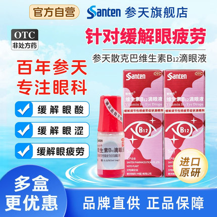 3盒参天玫瑰散克巴进口原研维生素B12眼药水缓解视疲劳模糊眼干涩