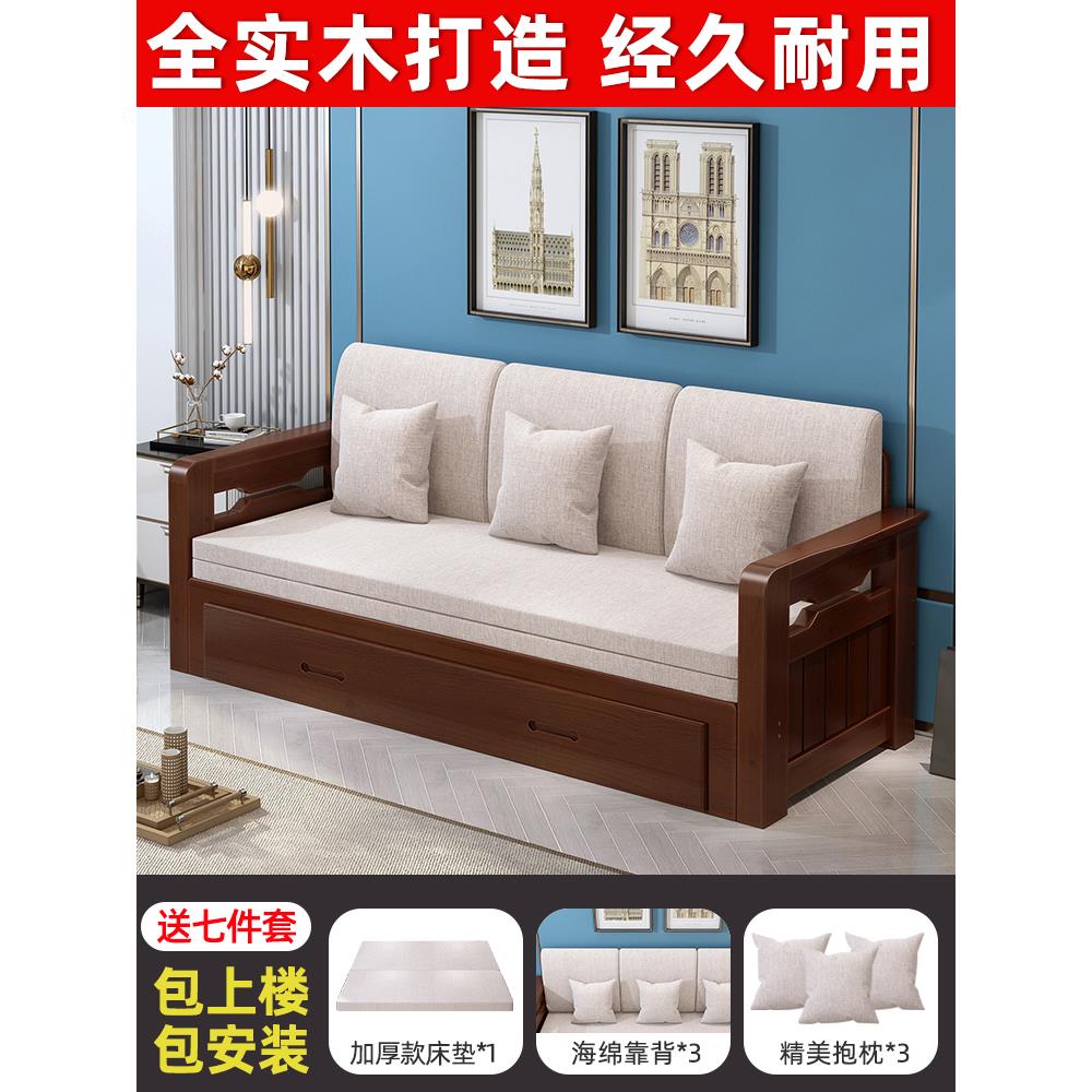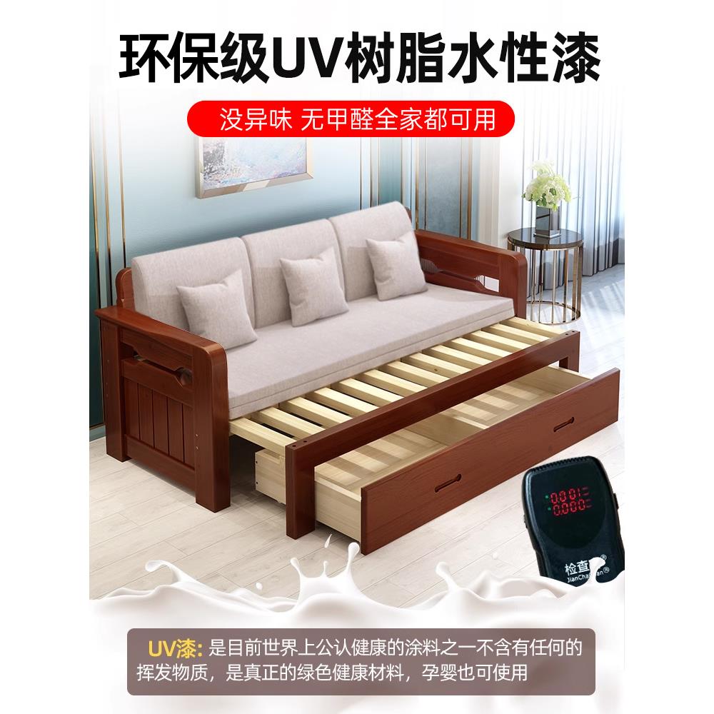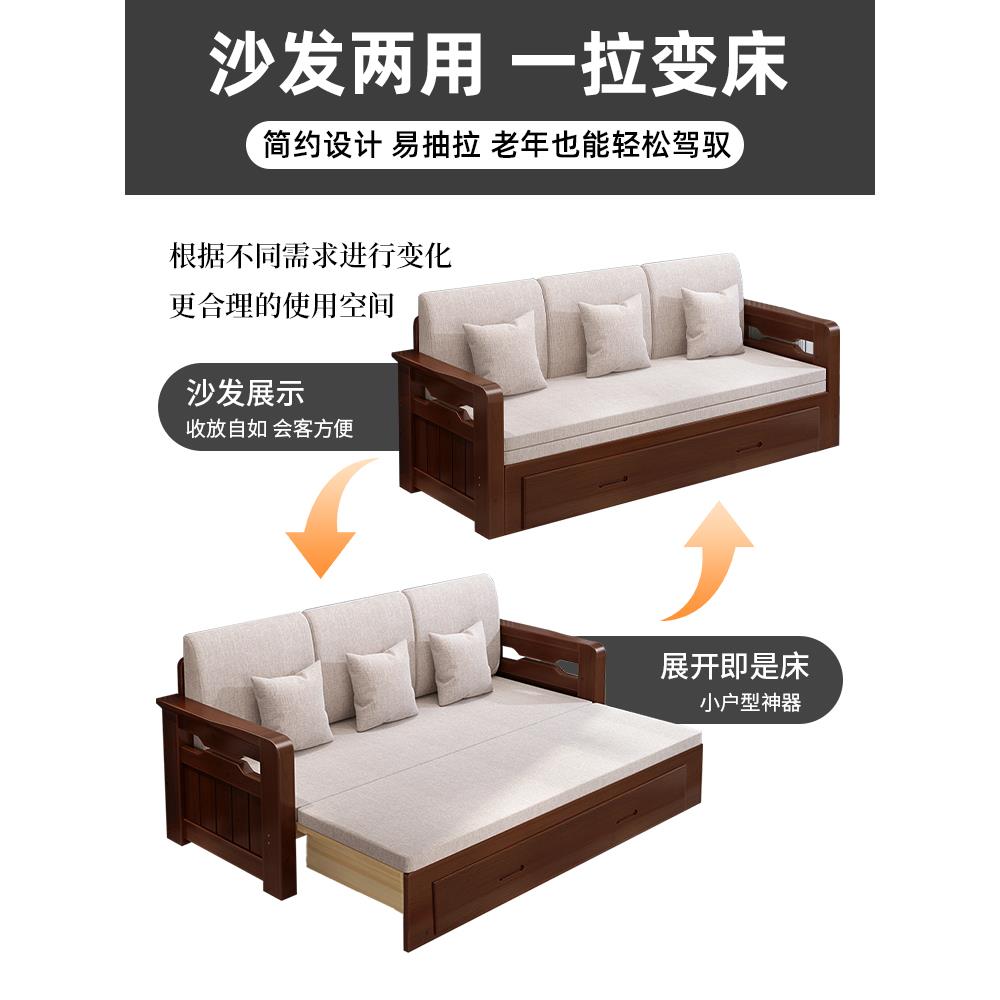 实木沙发床可折叠两用小户型客厅多功能单双人坐卧1.5m抽拉伸缩床
