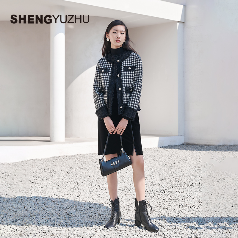 声雨竹官方旗舰店秋冬新款毛呢外套女加厚商场同款长袖短款高级感