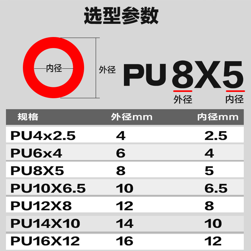进口料PU气泵管8*5散卖空压机气动气管软管4/6/10/12MM木工喷漆管