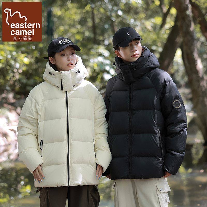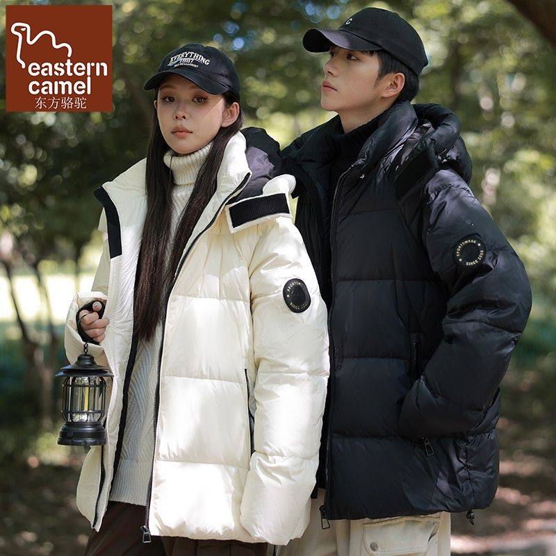 东方骆驼短款羽绒服女2025新款冬季情侣通勤防风连帽御寒蓄热外套