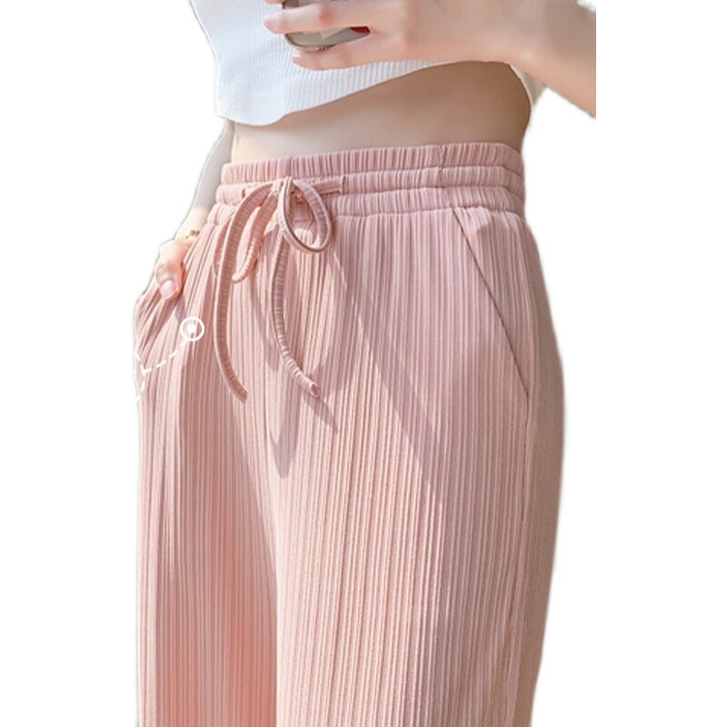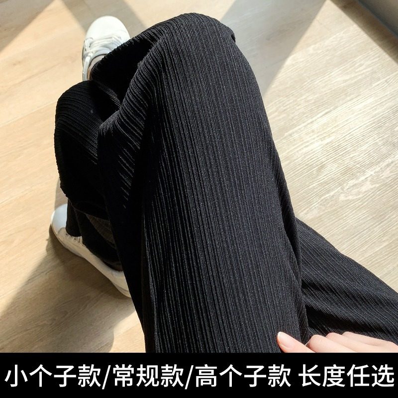 冰丝阔腿裤女夏季薄款窄版145小个子垂感直筒高腰条纹休闲裤子150