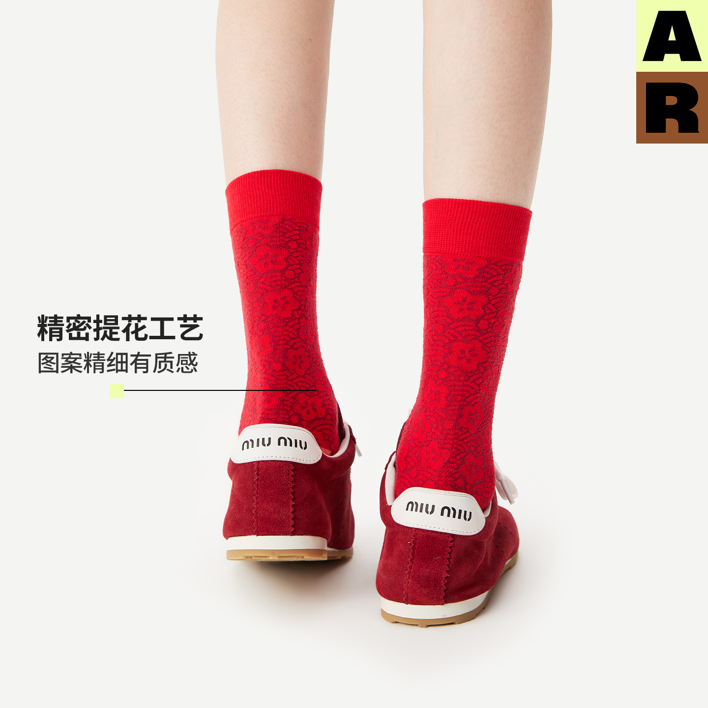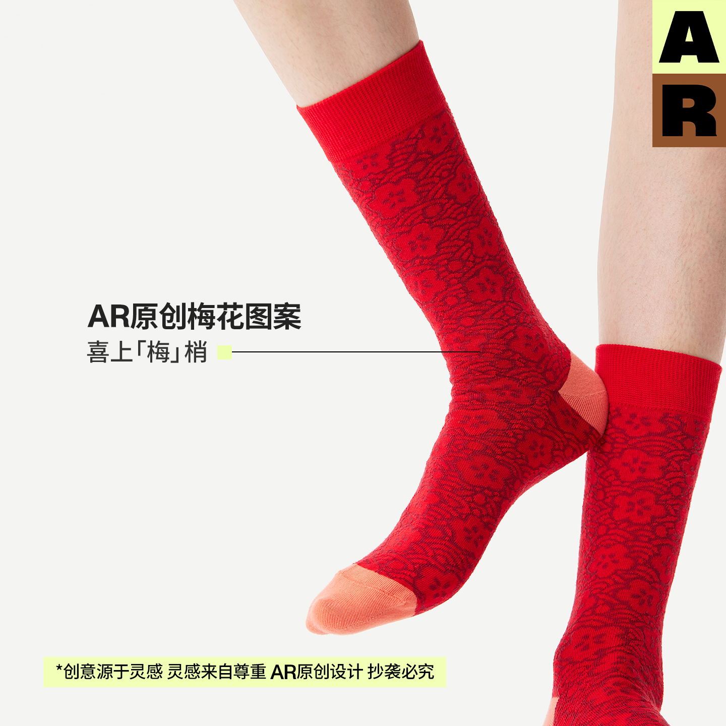 AR袜子女中筒袜秋冬款保暖厚红色梅花显瘦趣味长筒袜子春秋本命年