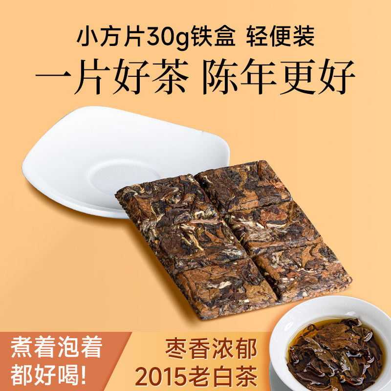 福鼎白茶正宗老白茶茶叶2015年枣香寿眉小方片饼干茶30克礼盒装