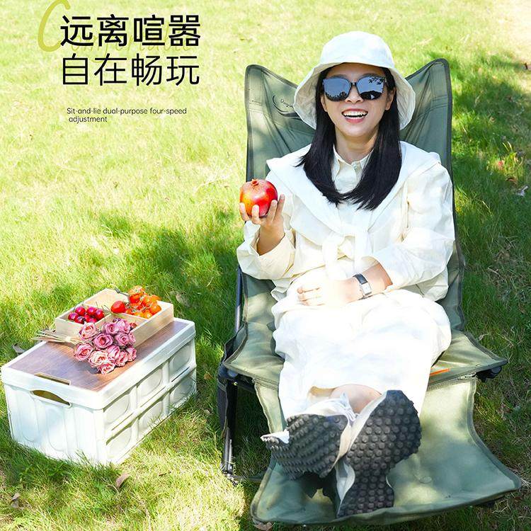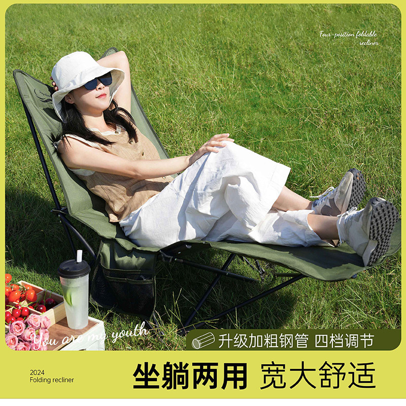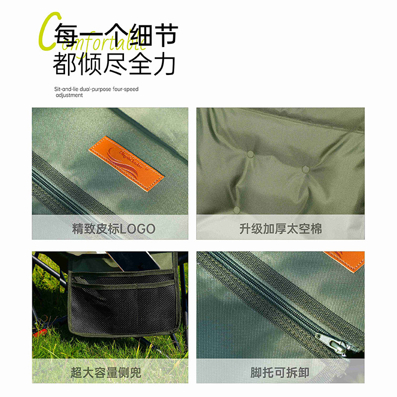 鼎新户外新款四挡加棉可调节躺椅户外折叠椅便携式露营椅