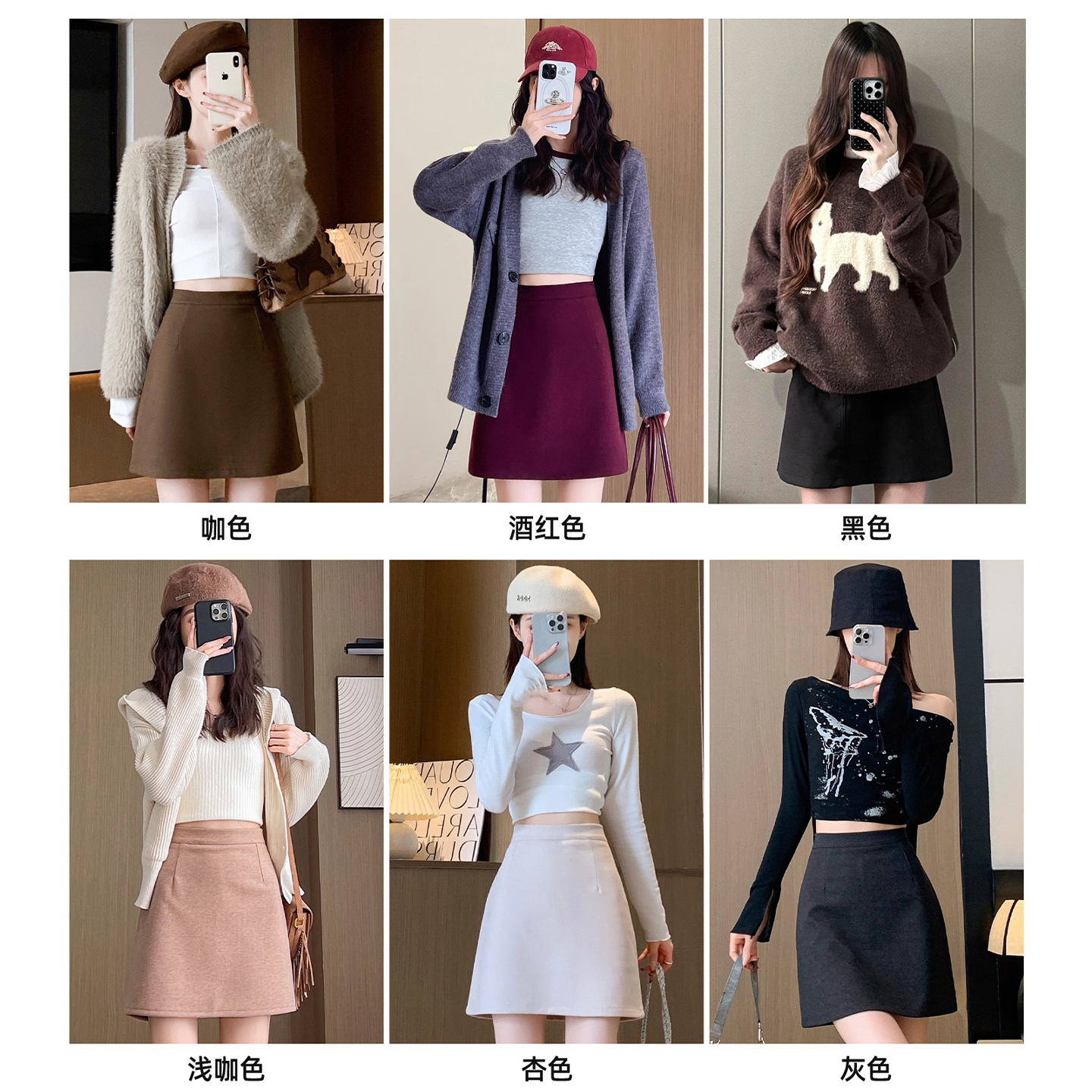 黑色毛呢半身裙女a字紧身包臀