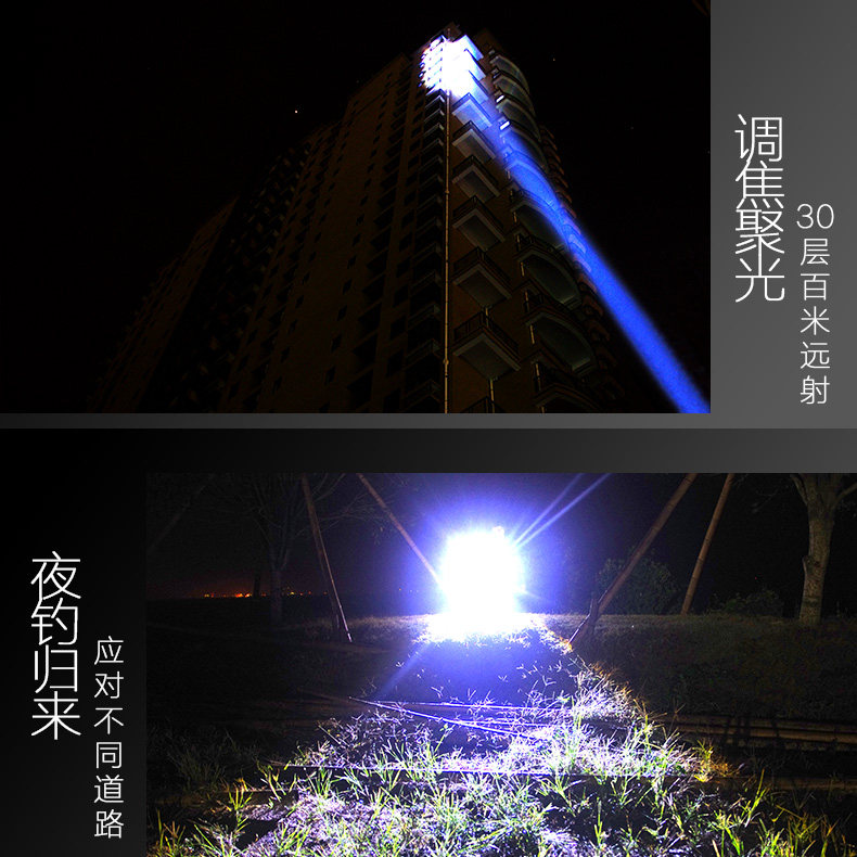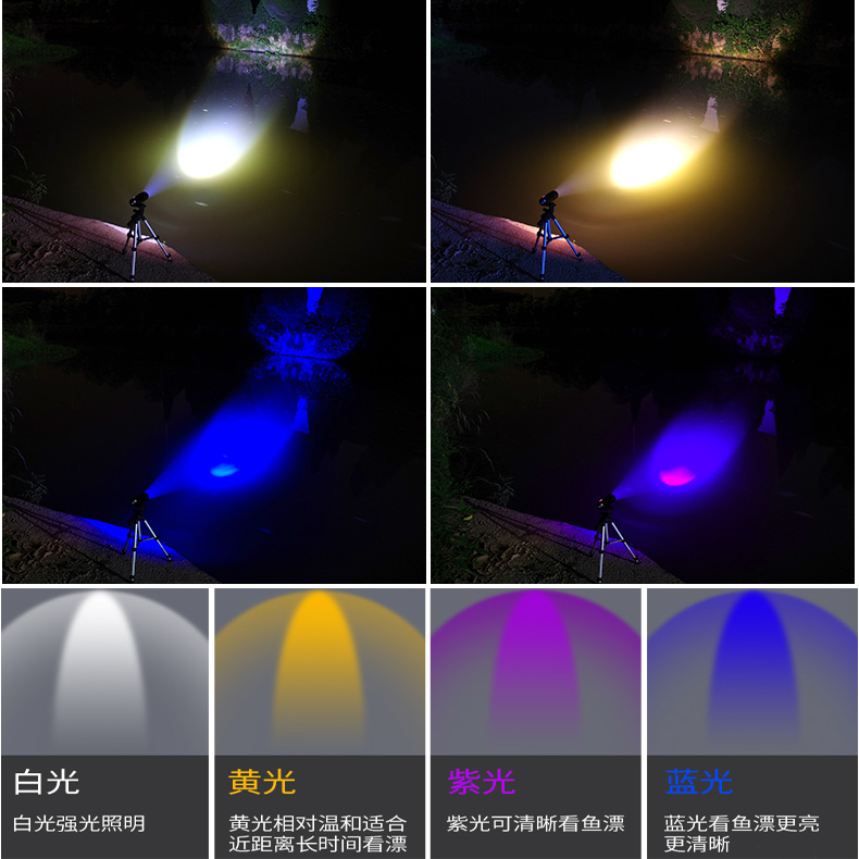 夜钓灯激光炮钓鱼专用蓝光灯疝气紫光射灯蛙四光源强光充电手电筒
