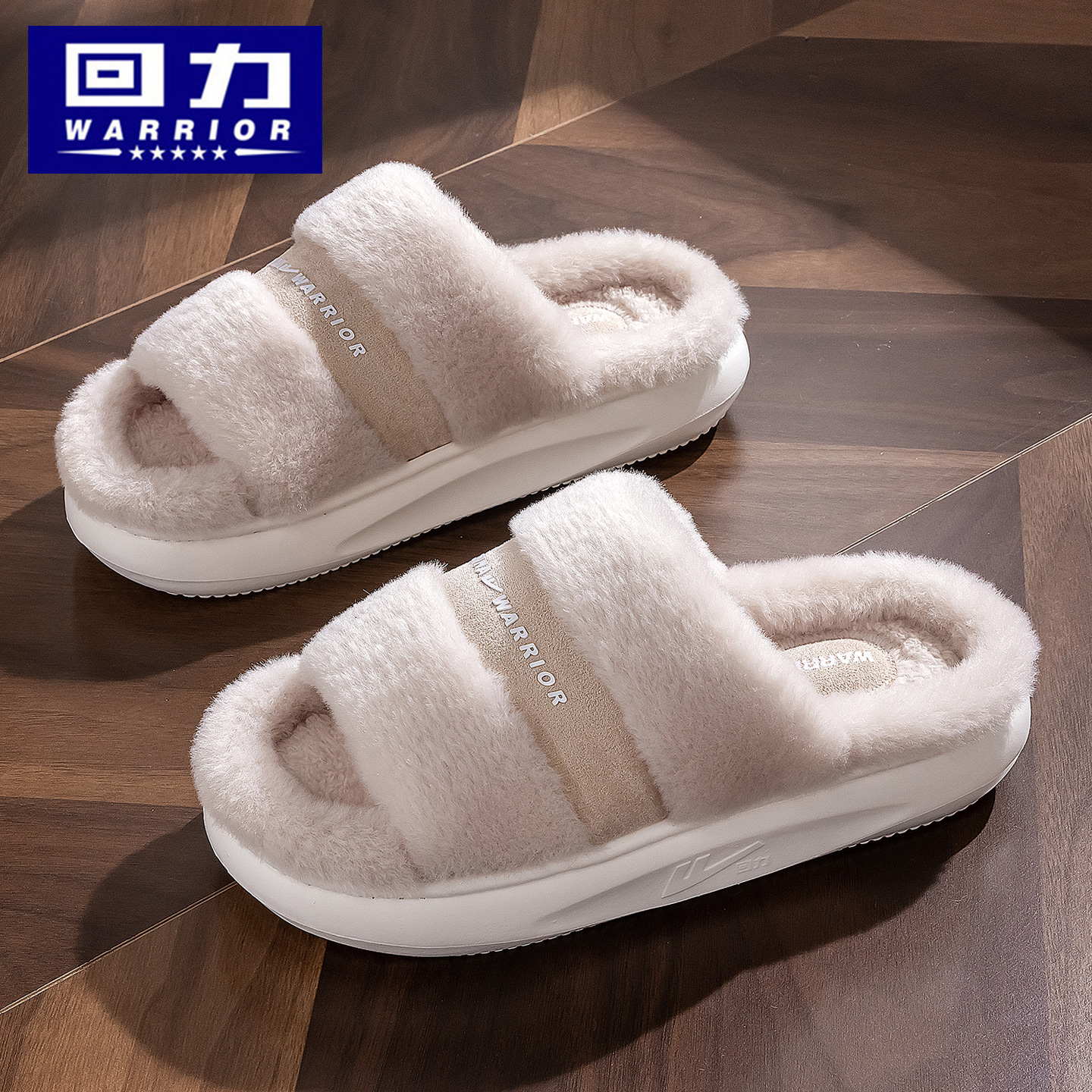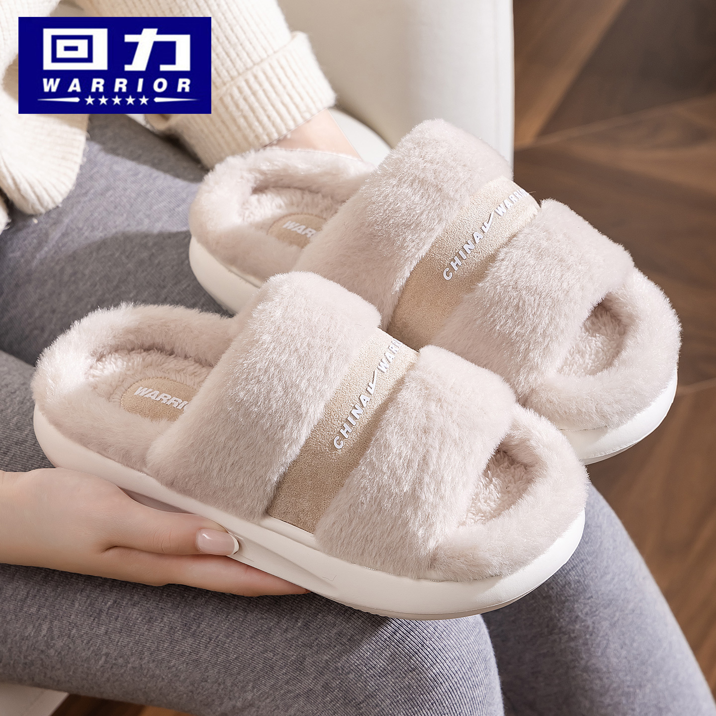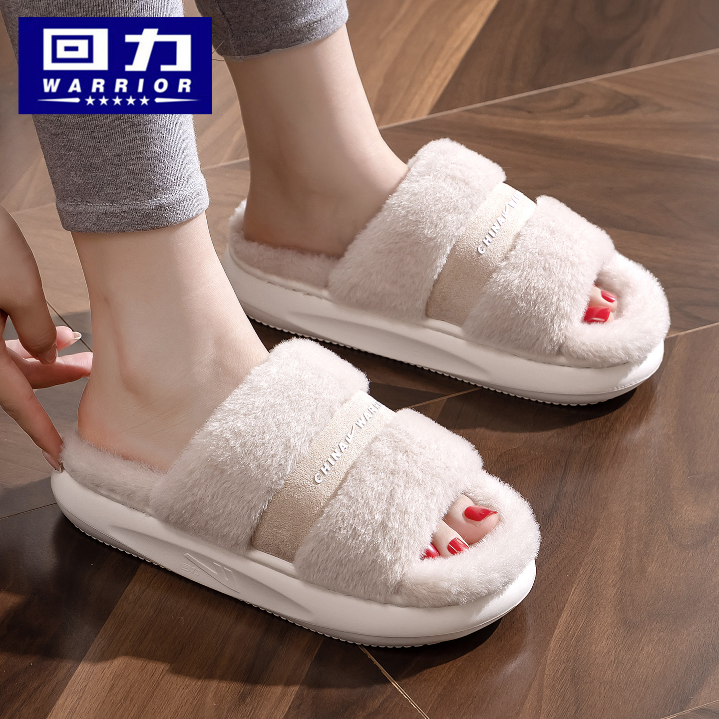 回力日式开口棉拖鞋女室内家居毛绒地板情侣家用防滑男士拖鞋冬季