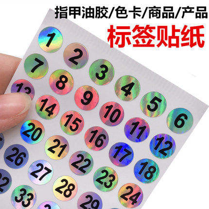 美甲色板数字贴纸防水号码贴相册色商品卡产品分类指甲油瓶标签贴