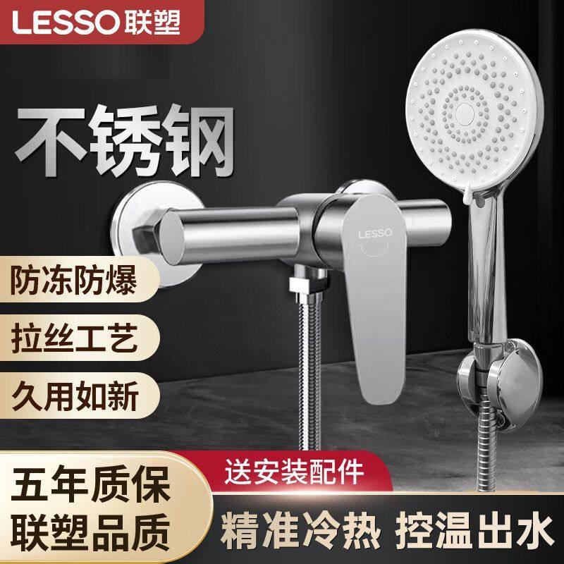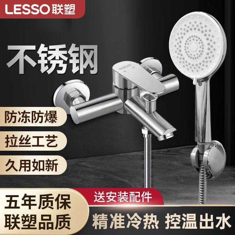 联塑304不锈钢淋浴水龙头混水阀花洒套装全套增压冷热浴缸龙头