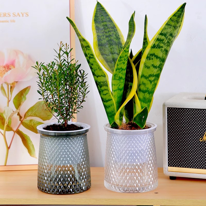 新款塑料水培透明盆懒人自动吸水早安盆绿萝北欧简约吊兰绿植花盆
