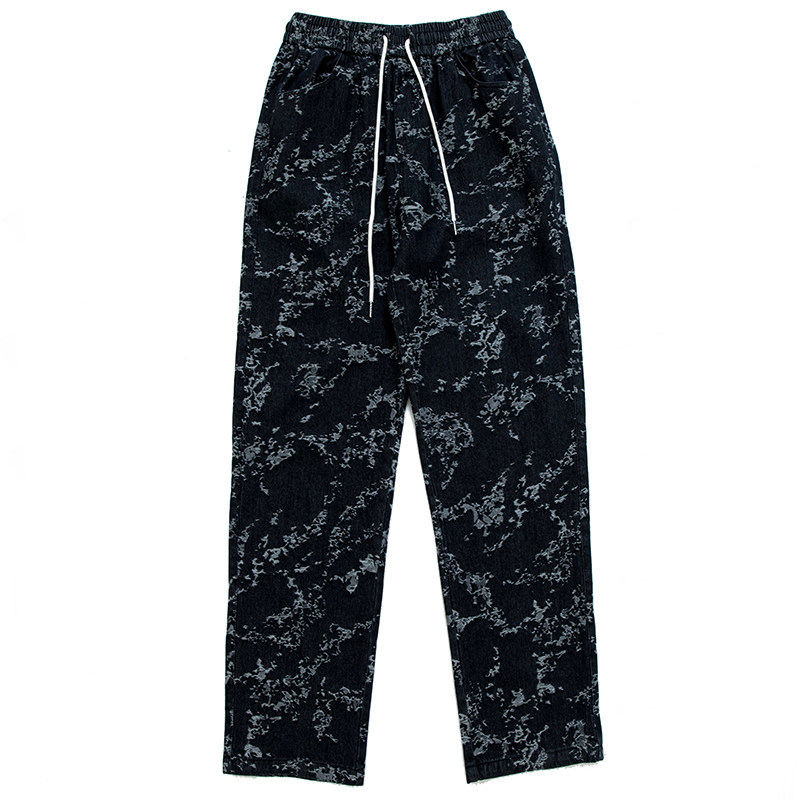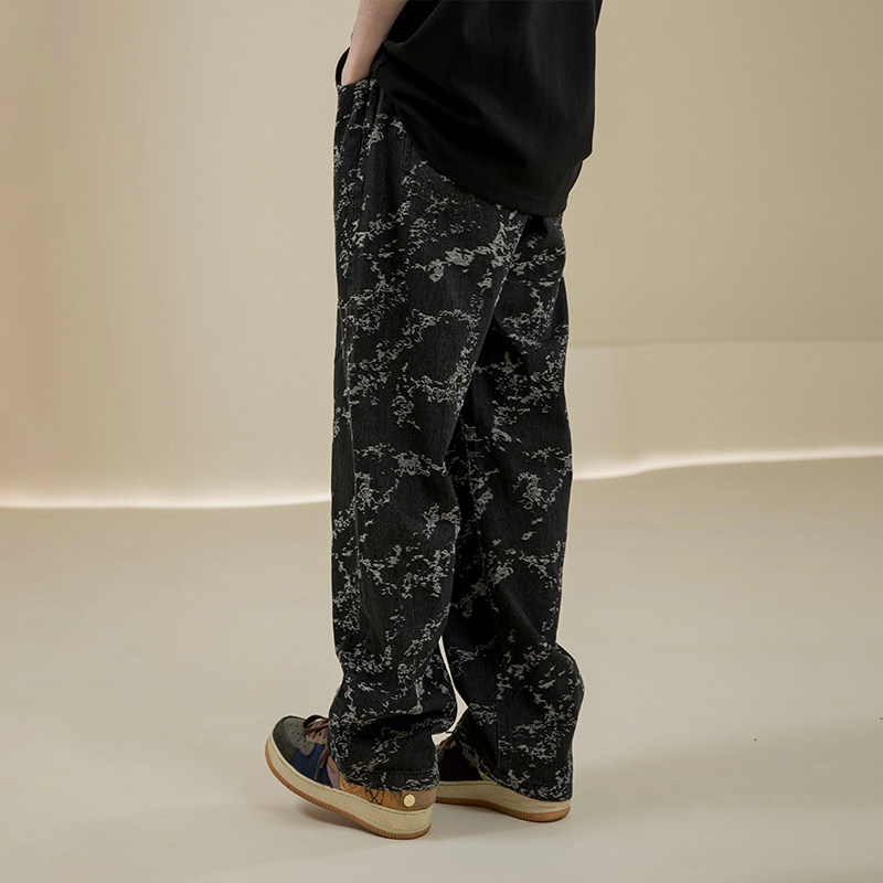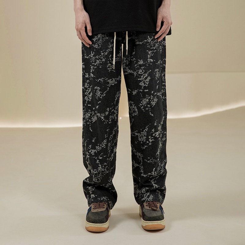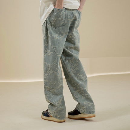 烦恼的Octopusl国潮提花水洗牛仔裤美式嘻哈直筒宽松秋季长裤子男