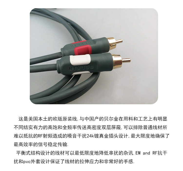 贝尔金 Belkin镀金 超软 发烧级3.5mm转双莲花RCA音频信号转接线
