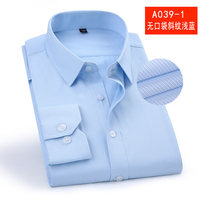 春季无口袋长袖衬衫男商务职业工装斜纹款浅蓝色衬衣寸男衫工作服