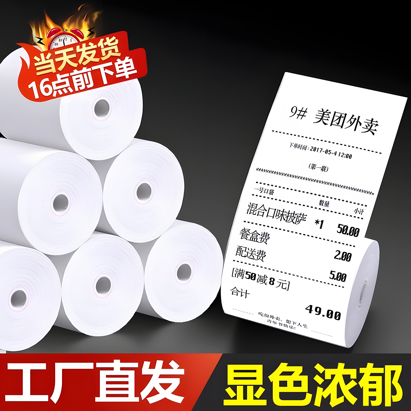 热敏打印纸57x50打印纸80x80热敏纸收银纸80x60x50美团饿了么外卖厨房超市收银机57x40x30通用58mm小票纸整箱