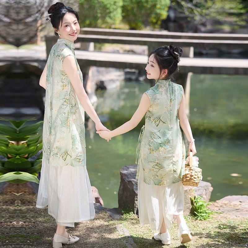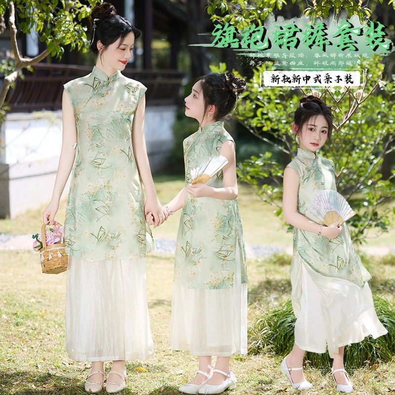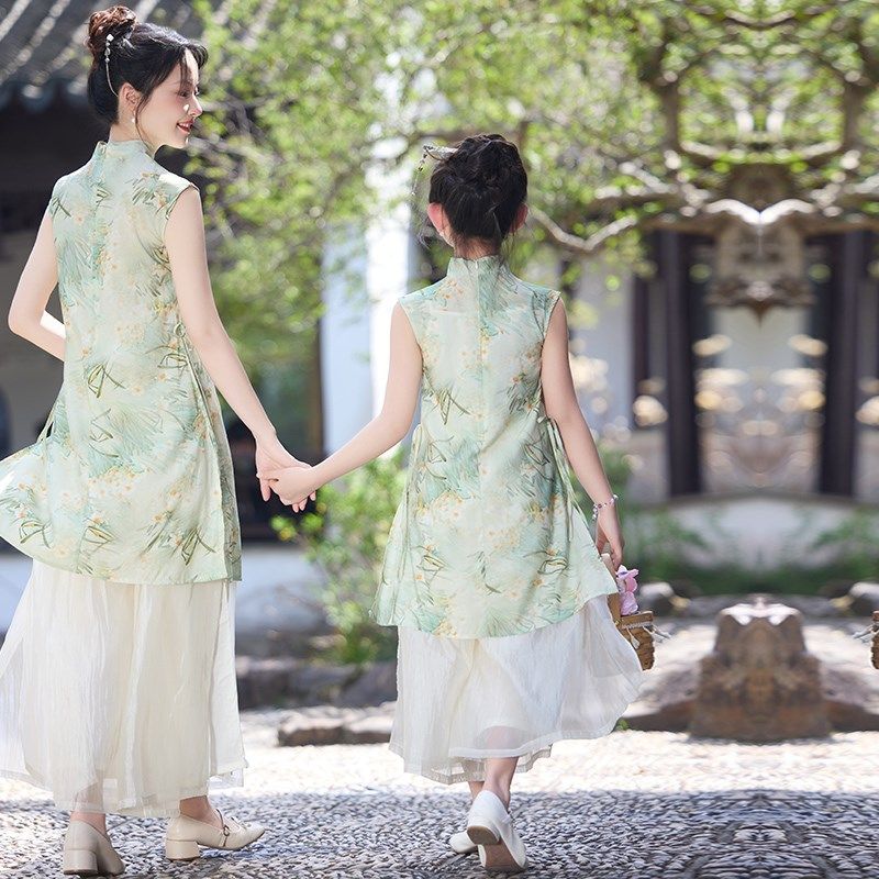 女童汉服夏装2025新款高端亲子装旗袍连衣裙儿童新中式母女装套装