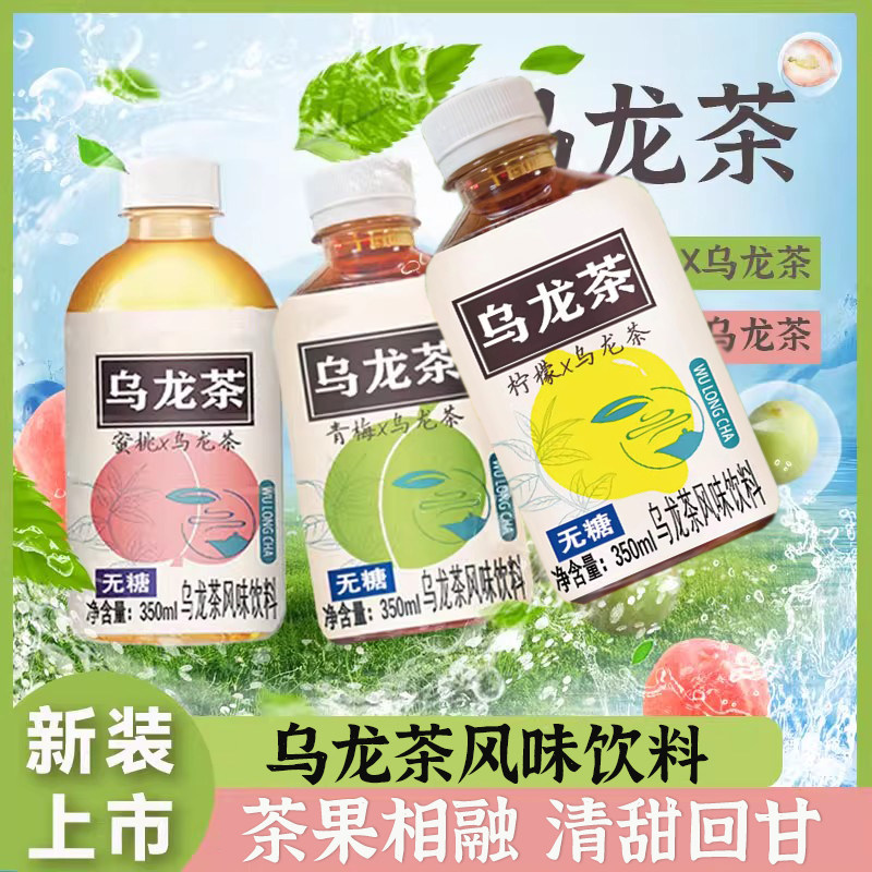 乌龙茶无糖低糖350ml*12瓶青梅蜜桃柠檬0脂饮料口感清爽乌龙茶饮