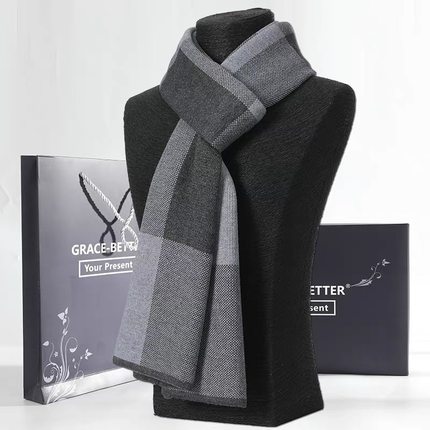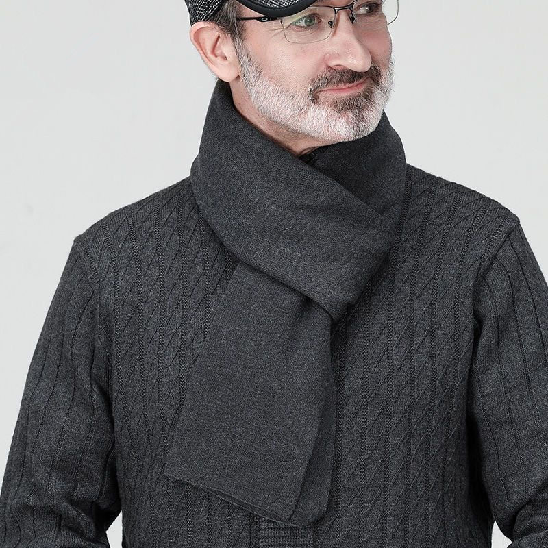 加厚围巾男士秋冬季中年青年轻韩版百搭简约爷爷爸爸中老年人围巾