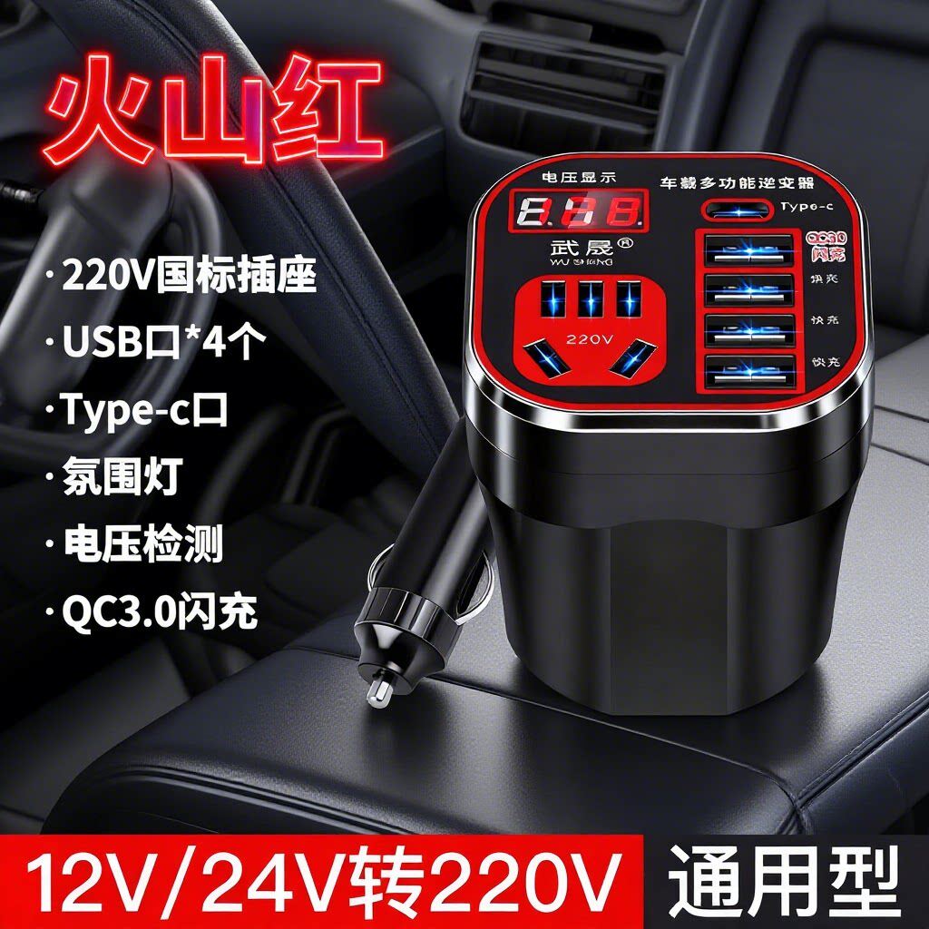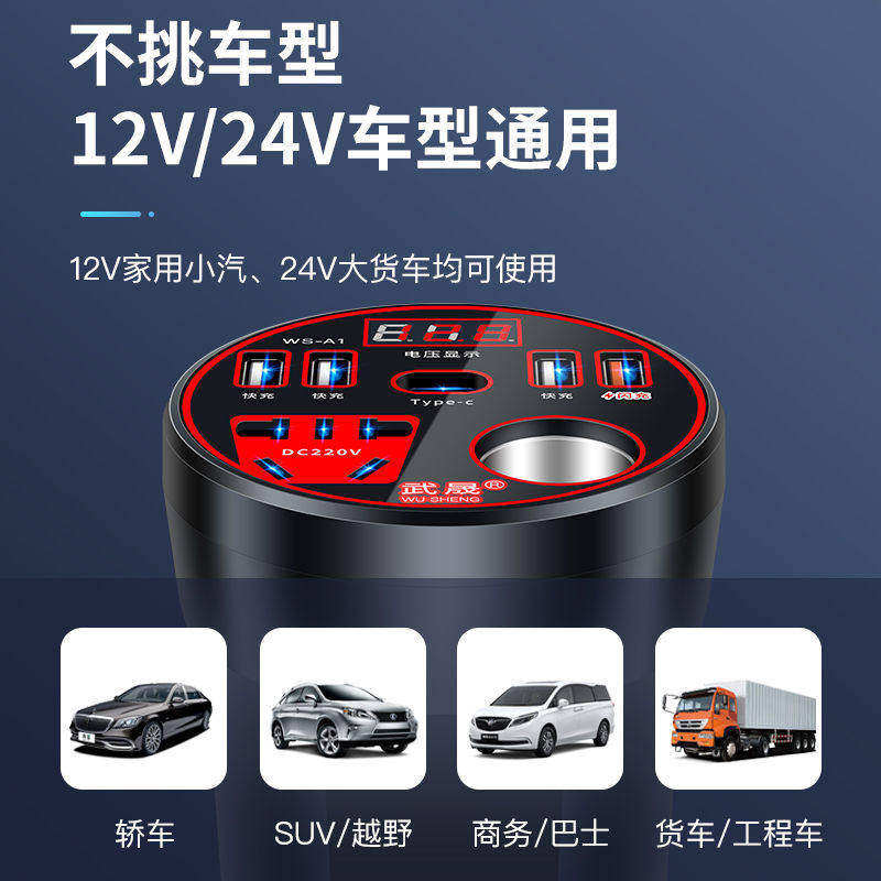 汽车货车专用逆变器12V24V转220V智能快充电器电源多功能转换插座